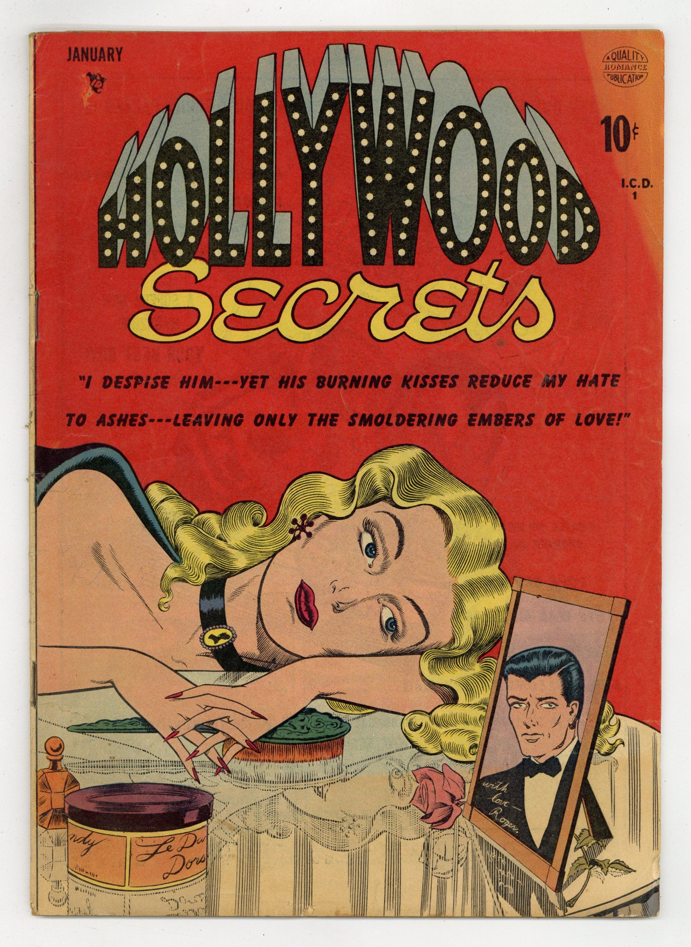 $130.00Bill Ward cover. Comic stories reprinted in Hollywood Secrets of Romance (I.W. Reprint) #9. In order of appearance: "Ladies' Man" art by Bill Ward, reprinted as "Self Centered" in Love Confessions (1949) #10; "Star of Tomorrow"; "My Heart's in the Saddle" art by Reed Crandall; and "Theatre Lover". "The Gentle Monster" text story. 36 pages. Full color. Cover price $0.10.