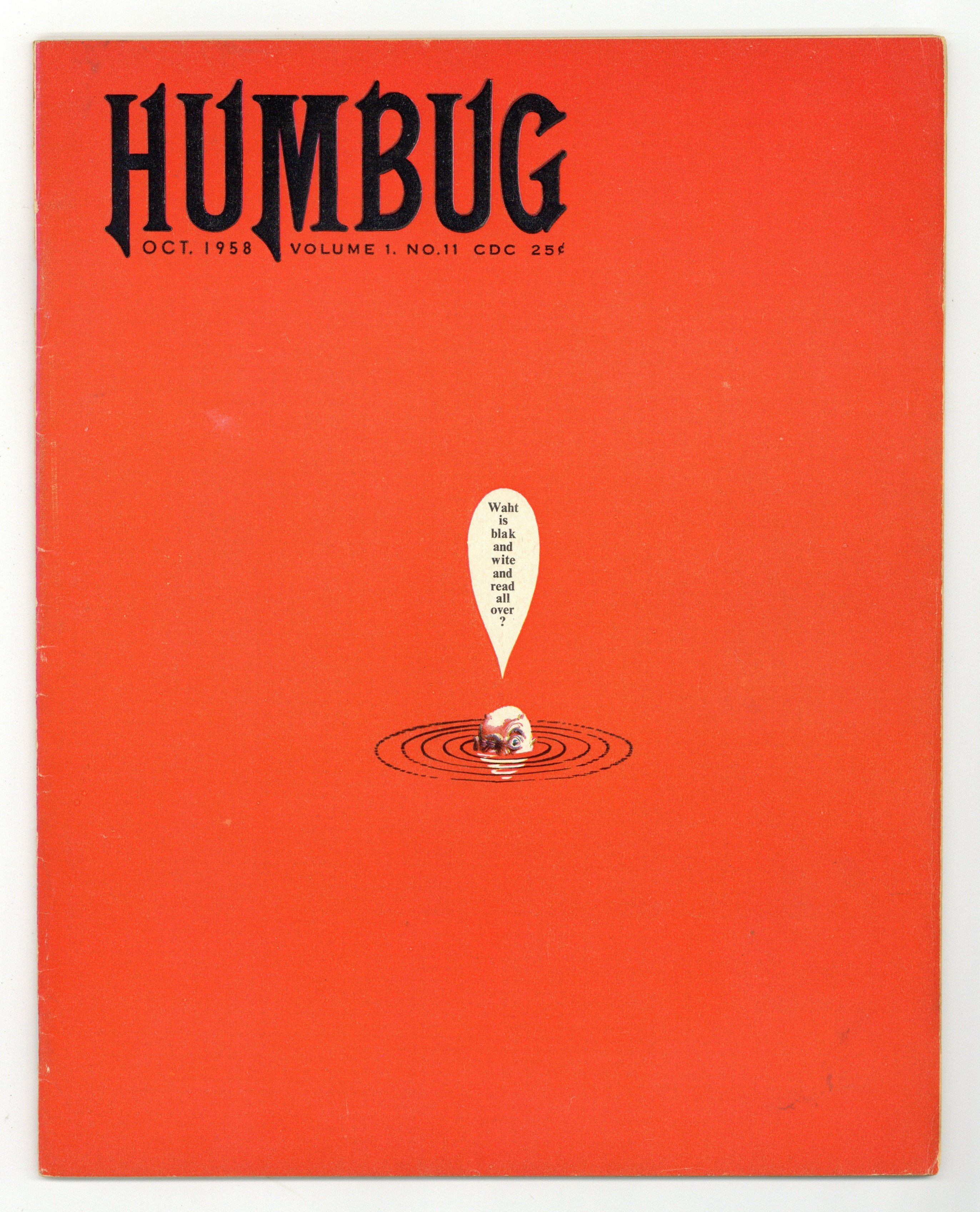 Cover by Harvey Kurtzman. Stories and art by Harvey Kurtzman, Bill Elder, Jack Davis, Al Jaffee, Arnold Roth, and Larry Siegel. Another attempt by Harvey Kurtzman to duplicate the success of Mad magazine, Humbug was actually published by the artists who created it. These last two issues were produced in magazine-size format. Parodies of the monster movie Rodan and 1950s muscle magazines. Satirical looks at racing fans, wedding photographers, and hunting. An excerpt from the novel Gulliver's Travels by Jonathan Swift, the original English satirist. Contributions from many past and future MAD Idiots, including Bill Elder, Jack Davis, Al Jaffee, and Arnold Roth. Excerpts from Kurtzman's previous magazine Trump, including spoofs of L'il Abner and Rin-Tin-Tin. Man - We're Beat!; Randan; Humbug Holiday Album: The Fourth of July; Sports; Judo; Sing a Song of Sixpence; Report on Cigarette Filter Tips; T.V. Titles; And You Know Who Gets Killed; Muscle Magazines; Old Prints for Future Viewing; The Wedding Photographer; Portrait of the Adult West; Gullver's Travels; Are You a Conformist?; L'l Ab'r; Hunting; How to Read an Annual Report; Tin-Rin-Rin-Tin-Rin; Columnia LR Panels; Smoke the Big M! Final issue of the series. 8 1/2-in. x 11-in.; 48 pages, B&W. Cover price $0.25.