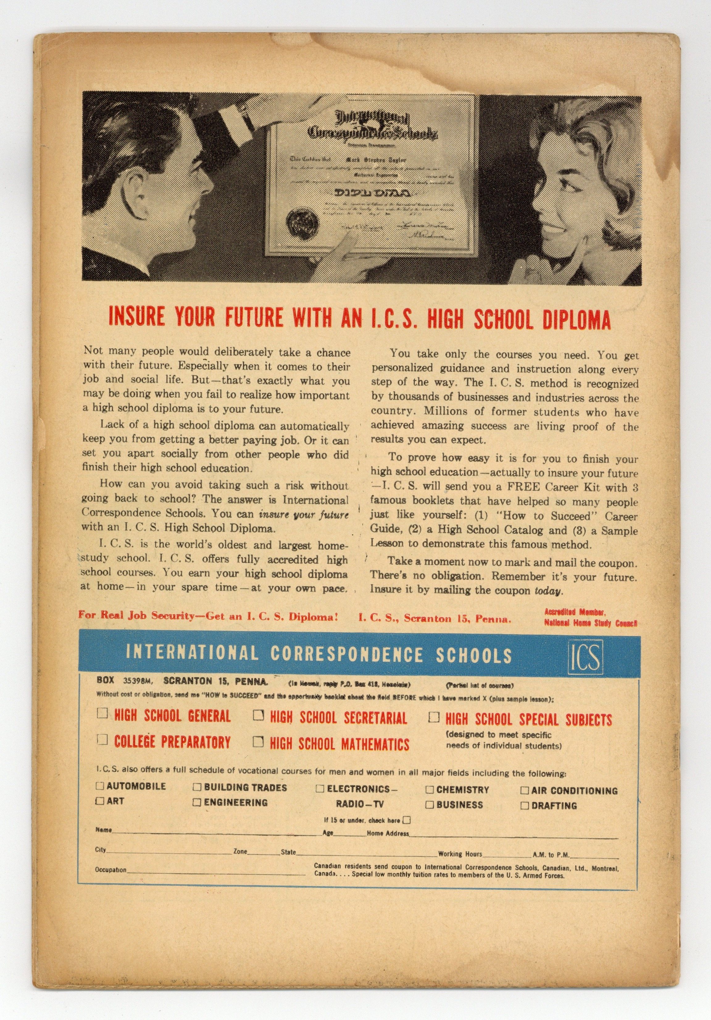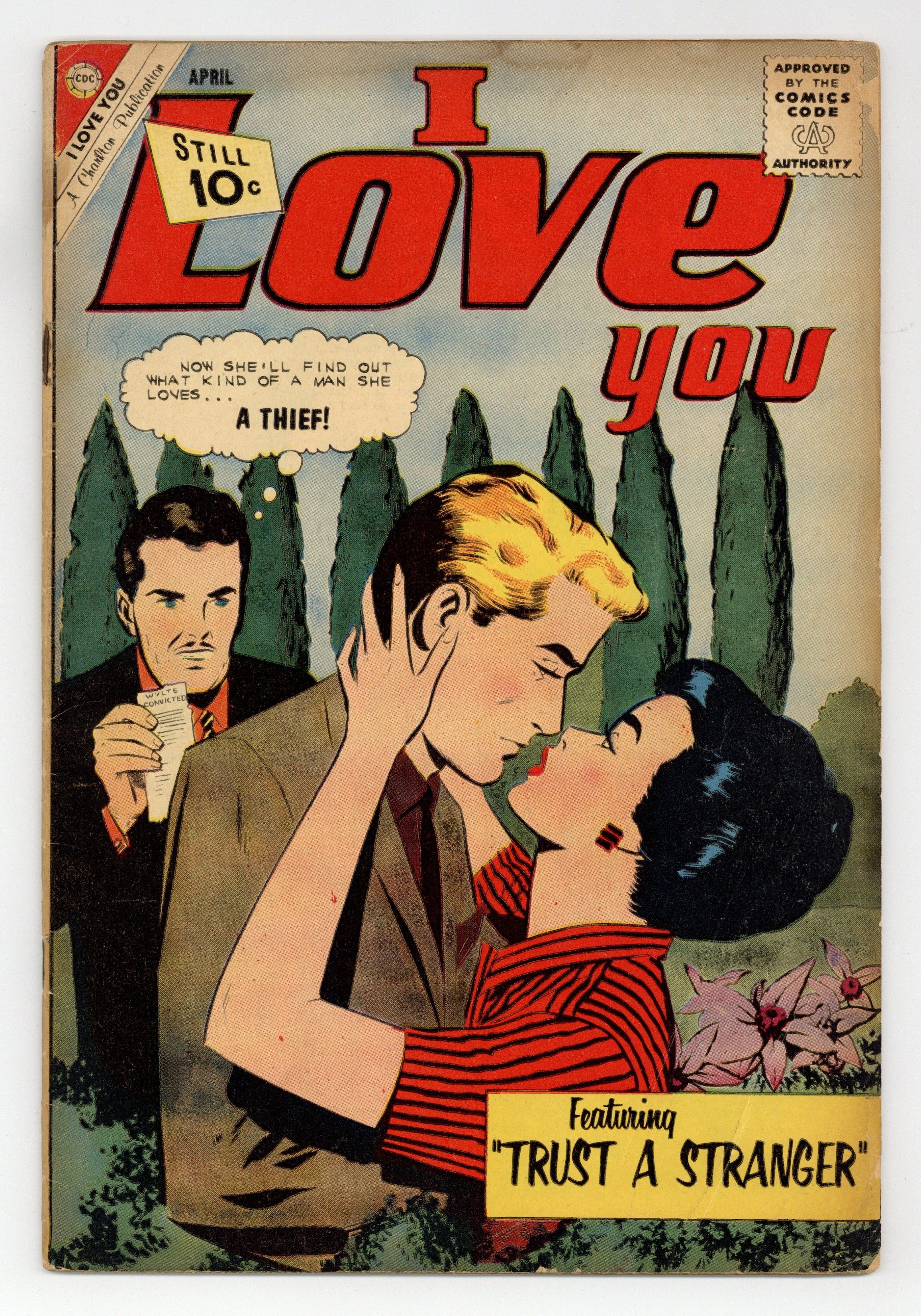 Cover by Joe Sinnott and Vince Colletta. Stories and art by Joe Sinnott, Vince Colletta, Rocco "Rocke" Mastroserio and Charles Nicholas. Charlton's long-running romance title showcased the fashions and relationship ideals of its rapidly changing eras. Camilla goes all the way to the rainforest to find out if Nick is still alive. Frank and Denise work together, so they must keep their romance secret. Travel agent Lynn falls for Karl, a client with a secret, in a story with early art by future Fantastic Four legend Joe Sinnott. To Find My Love; We Denied Our Love; Man or Mouse?; Trust a Stranger. 32 pages, Full Color. Cover price $0.10.