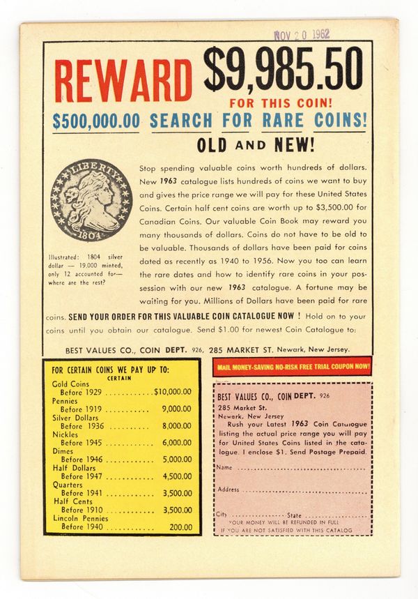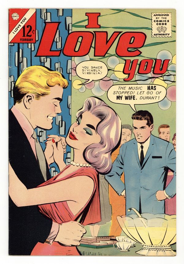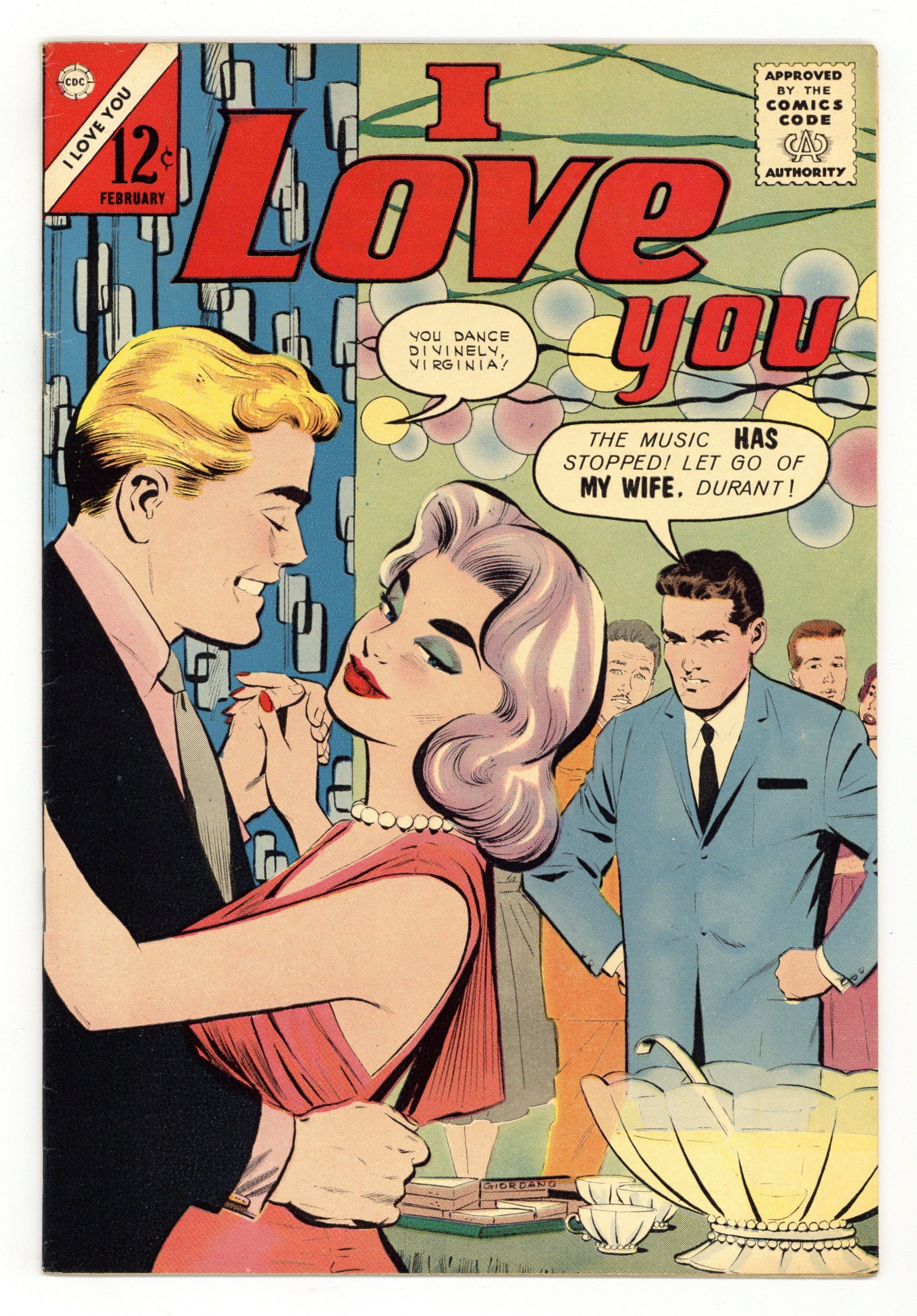 Published Feb 1963 by Charlton Comics Group.$125.00Cover by Dick Giordano. Stories and art by Sal Gentile, Dick Giordano, John Tartaglione, Vince Colletta and Rocco "Rocke" Mastroserio. Charlton's long-running romance title showcased the fashions and relationship ideals of its rapidly changing eras. Pamela is crushed when it turns out Dick is a ladies' man who didn't take their relationship seriously. While running away to get married to Steve, Lorene gets the third degree from handsome bus driver Cliff. Newlywed Virginia wants to spend all her time with Ben, but her attentions are smothering him. Plus a PSA about how church attendance is anti-Communist, "Your Role in the Cold War." Just a Passing Fancy; Lest We Forget: George Washington; Destination, Love; A Reservoir of Romance; Selfish Love; God Is Never Out of Style. 32 pages, Full Color. Cover price $0.12.