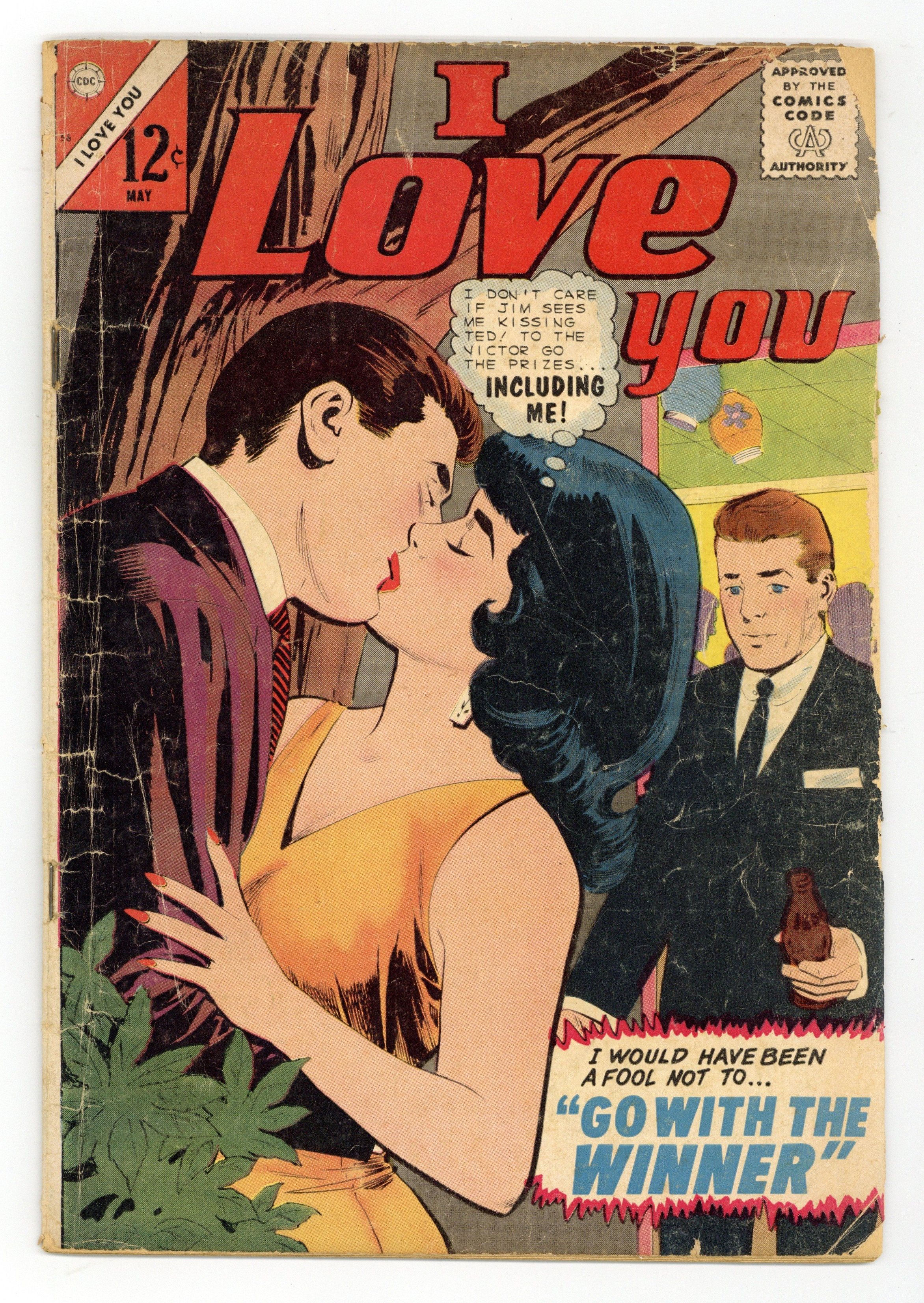 Cover by Dick Giordano. Stories and art by Bill Fraccio, Jon D'Agostino and Vince Colletta. Charlton's long-running romance title showcased the fashions and relationship ideals of its rapidly changing eras. Irma leaves Jim for new student Ted, a football star, because he seems more likely to win the class president election. Tony punches out Dave for trying to kiss a reluctant Ann, not knowing that Dave is actually her boyfriend. Newlyweds John and Mary discover what it's like to actually have to live with each other. Go With the Winner; Office Wife; Change of Heart; The Awakening; Elegant Ellen; My Lucky Sister. 32 pages, Full Color. Cover price $0.12.