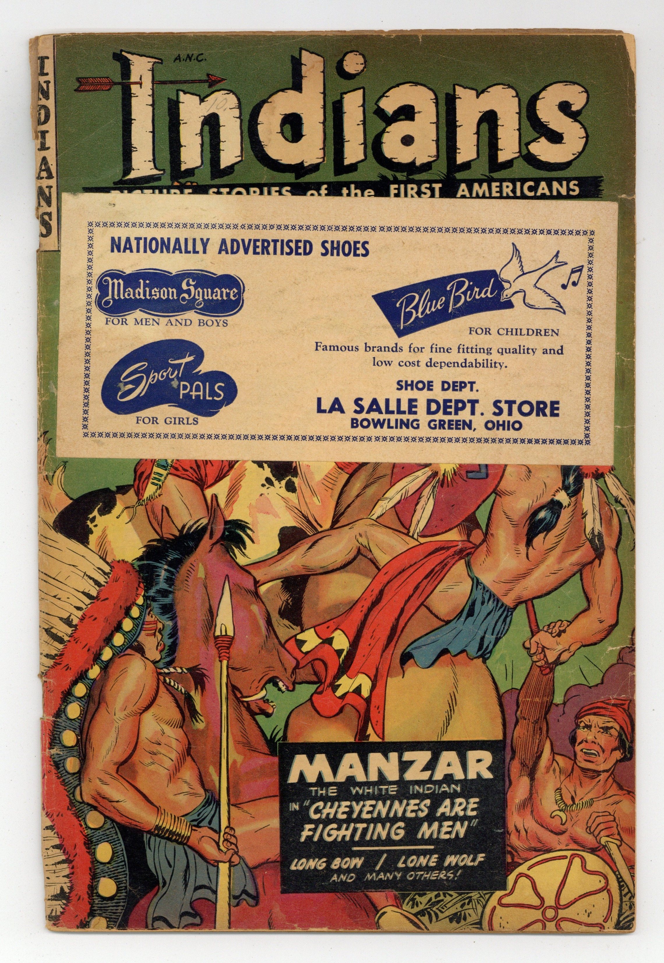 Cover by Maurice Whitman. Art by Tony D'Adamo and others. Western adventure stories told from the perspective of the first Americans. Orphan, a horse belonging to a Cheyenne family, gets caught up in hostilities between Pawnees and the Cheyenne; The true story of Seminole resistance leader Osceola; An illustrated text article on The Plains Tribes continues from the previous issue. Manzar the White Indian; Warriors of the West; Orphan of the Storm; The First Americans; Lone Wolf; Long Bow. 32 pages, Full Color. Cover price $0.10.