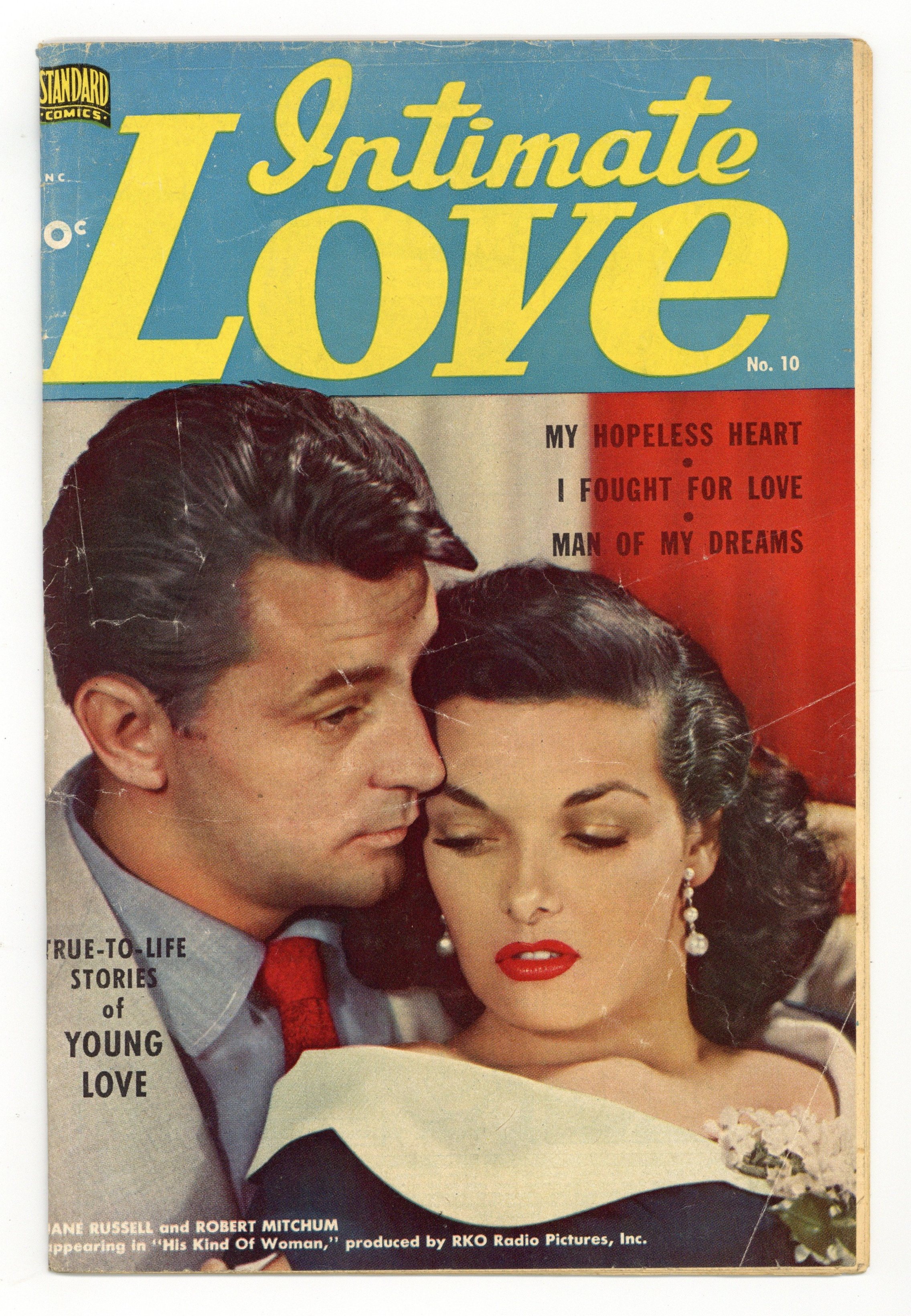 Published 1950 by Standard Comics.$70.00Photo cover. I Fought for Love, pencils by Ross Andru; Kitty and Ted are engaged, but Ted disapproves of Kittys friendship with Belle Hastings, who leads a wild life. Belle convinces Kitty to go on a double date with Ken and Bill; Ken and Belle are killed in a car wreck and Bill runs out, leaving Kitty to face the music; To preserve Belles reputation, she claims she was Kens date and Belle was her chaperone; Ted is supportive but Kitty thinks the scandal will ruin his life and breaks their engagement. Helen of Troy one-page non-fiction story, art by Rafael Astarita; Romance that led to Trojan War. My Hopeless Heart, pencils by Nick Cardy, inks by George Evans; Jill dates Fred, which upsets her sister Lou, who met him first and has irrationally fallen in love with him. Lou runs away; Jill and Fred become secretly engaged. Jills ailing mother makes her promise to find Lou and reunite her with Fred; On the wedding day of Jill and Fred, Lou shows up and Jill fears a scene, but Lou introduces her fiancé Dick and all is well. Spring Dance text story by Mickey Marks, art by H. W. Kiemle. Man of My Dreams!, art by John Celardo; Nora becomes engaged to Sandy Larsen, although he doesnt fit the description of her ideal man; She tries to change his habits, dress, and even rents an apartment for them when Sandy insists he wants to live in a house; She also tries to get him reassigned to an office job in the factory where he works, although he enjoys his current job. Love Quiz, art by H. W. Kiemle. 36 pgs., full color. Cover price $0.10.