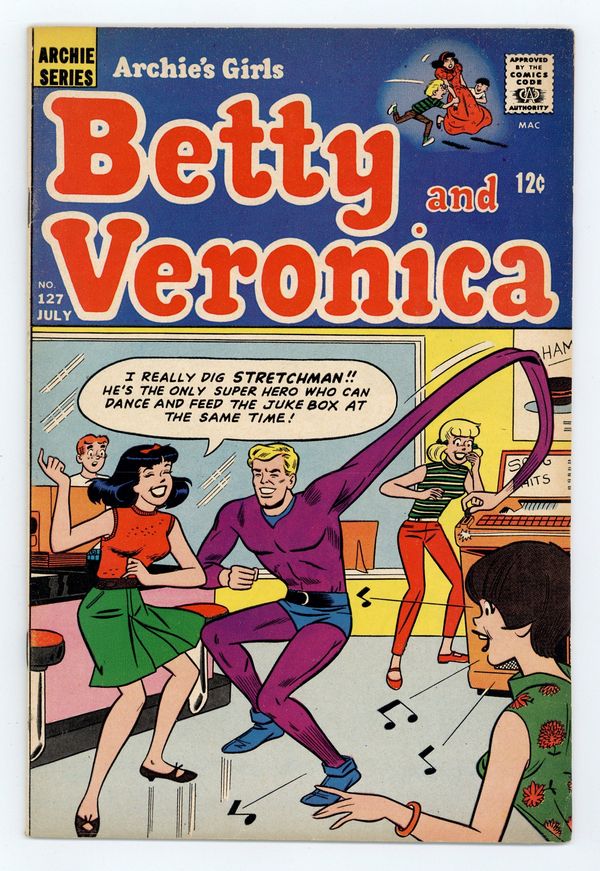 Cover pencils by Dan DeCarlo, inks by Rudy Lapick. Volley Dollies, script by George Gladir, pencils by Dan DeCarlo, inks by Rudy Lapick; The coach of the girls' volleyball team tries to get their minds off fashion and get them psyched up to play, but none of her motivational techniques work. Fan-Atics, script by George Gladir, pencils by Dan DeCarlo, inks by Rudy Lapick; Betty introduces Archie to modern fan culture and the obsessive lengths fans go to in order to get autographs and souvenirs from pop stars. Many Happy Returns, script by Jim Ruth, pencils by Dan DeCarlo, inks by Vincent DeCarlo; Betty tries to trick Archie into calling her after he tries to get the phone number of another girl. 36 pgs. $0.12. Cover price $0.12.