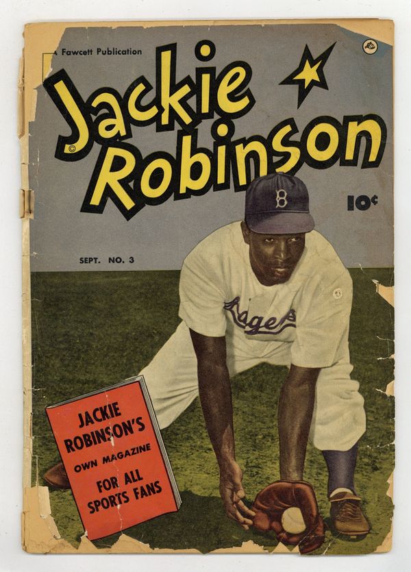"Jackie Robinson Breaks into the Majors." This story retells the origin of baseball legend Jackie Robinson, the first African American to break into the Major Leagues. Also includes: "Jackie Robinson Battles the Teen-Age Terror"; "Jackie Robinson Rides the Whirlwind"; "Wee Willie Keeler"; and "It Happened in Brooklyn." Written by sportswriter Charles Dexter. Photo cover. 36 Pages, Full Color. Cover price $0.10.