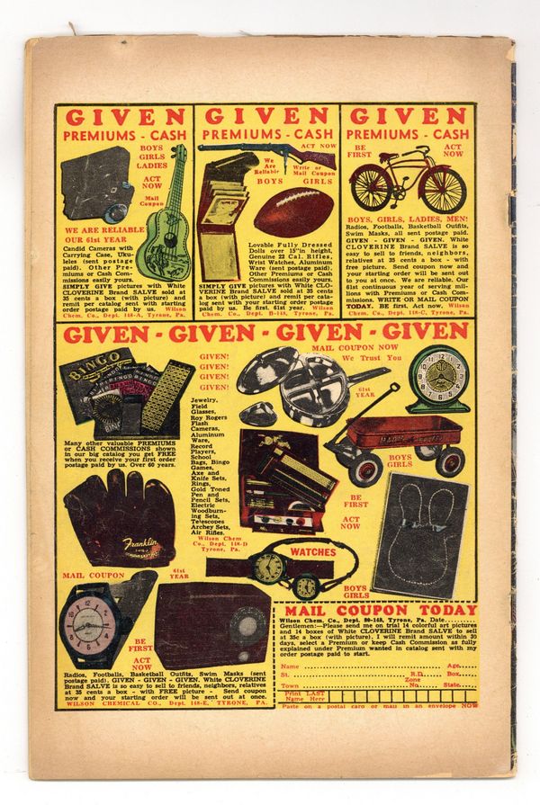 Cover art by Joe Maneely. "Jungle Night!", script by Don Rico, pencils by Jay Scott Pike, inks; Christopher Rule; Jann delivers jungle serum to an infected female gorilla. "Jungle Maze" text story. "Tribal Warfare!", script by Don Rico, pencils by Jay Scott Pike, inks by Christopher Rule; Two uranium prospectors use a giant squid to poison a village watering hole to keep away the natives while they extract the uranium; Jann exposes them and turns them over to the tribe to deliver to the authorities. "Prize Trophy!", script by Don Rico, art by Don Heck; Cliff teaches a hunter the importance of humane hunting. "A Time of Hazard!", script by Don Rico, art by Syd Shores; A lion cub explores the jungle. "The Bottomless Pit!", script by Don Rico, pencils by Jay Scott Pike; After Pat falls into a deep pit, he and Jann have to follow dangerous monitor lizards in order to find an escape route. 36 pgs., full color. Cover price $0.10.