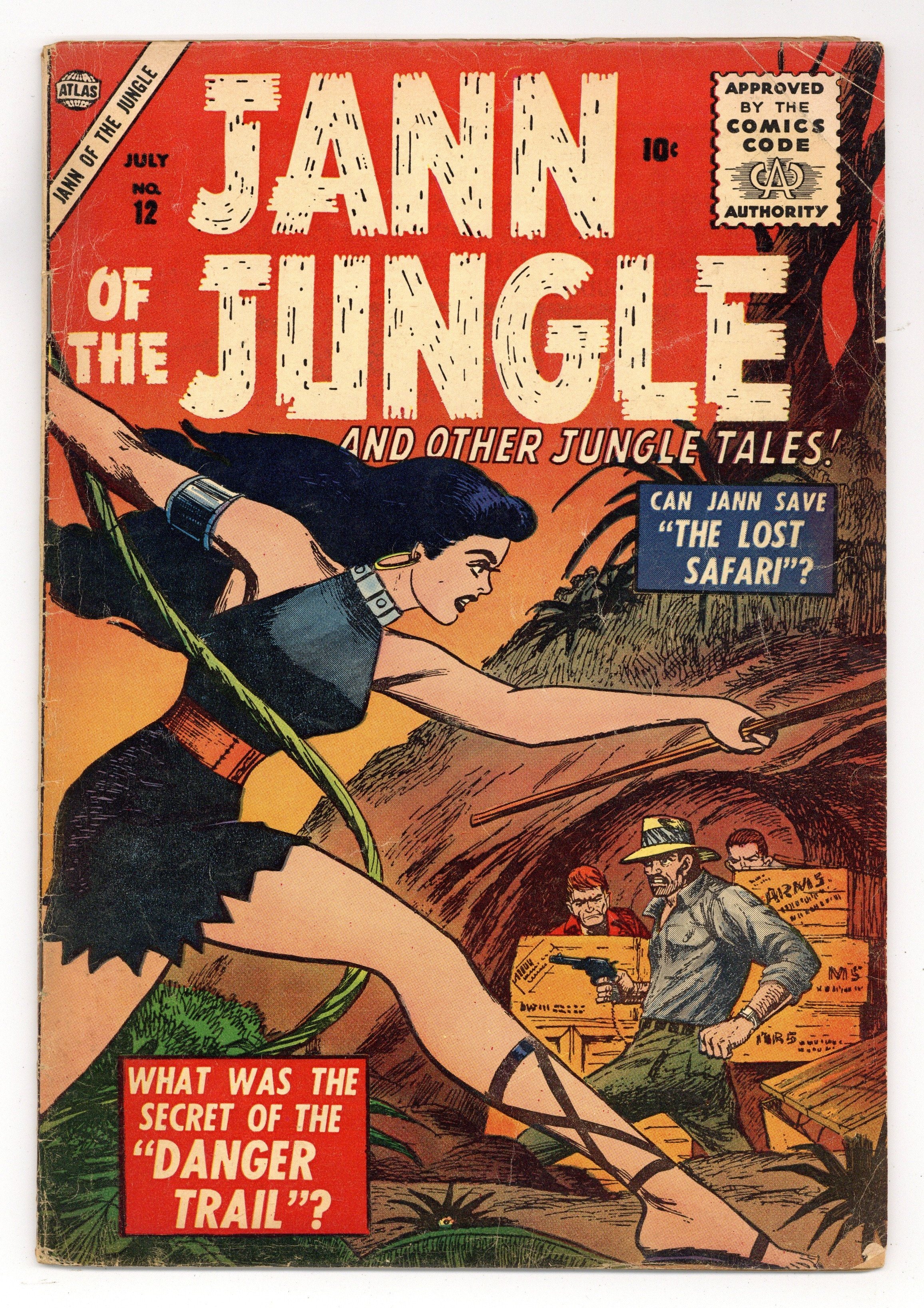 "Revolt of the Tribes!", script by Don Rico, pencils by Jay Scott Pike; Jann prevents the drugging of the Makasis and thwarts the plans of their chief Kabubi and his ally, Paulo the smuggler. "Elephant's Laugh" text story. "The Lost Safari!", script by Don Rico, art by Jay Scott Pike; Jann shows a hunter that the animals of the jungle can be his friends. "The Swamp Peril!", script by Don Rico, pencils by Jay Scott Pike; A trophy hunter proves his bravery to himself when he rescues Cliff from a crocodile. "Fang vs. Fury!", script by Don Rico, art by Syd Shores; A male lion challenges a lioness and is allowed, by her, to adopt her and her family as his own. "Danger Trail!", script by Don Rico, pencils by Jay Scott Pike; A pair of childless gorillas adopt a human boy and protect him from a lion attack. Jann returns the boy to his father. 36 pgs., full color. Cover price $0.10.