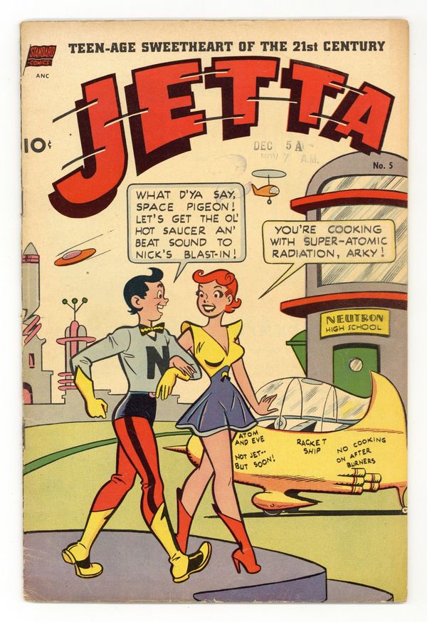 Jetta in "Man Trouble," "Jet Jaunt," and "My Cosmic Hero." Zoomer back-up story, "Frat Race." Dan DeCarlo art. Cover price $0.10.