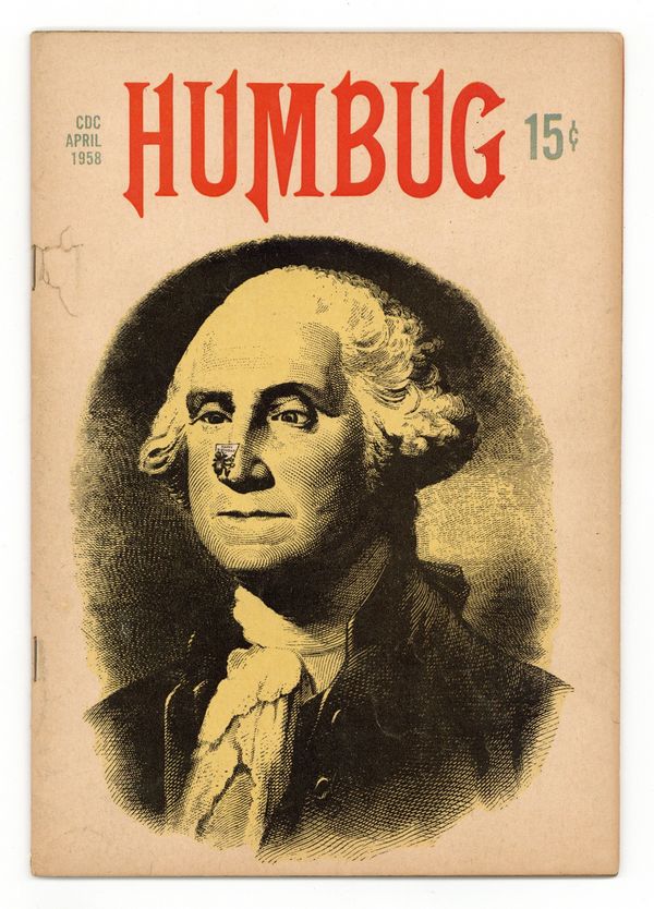 Stories and art by Harvey Kurtzman, Bill Elder, Jack Davis, Al Jaffee, Arnold Roth, Harry Purvis, Larry Siegel and Russ Heath. Another attempt by Harvey Kurtzman to duplicate the success of Mad magazine, Humbug was actually published by the artists who created it. Parodies of 1950s bestsellers and the Elvis movie Jailhouse Rock. People from history are tormented by Sputnik satellites. Satirical looks at car magazines, snow sculptures, and Miami. Contributions from many past and future MAD Idiots, including Bill Elder, Jack Davis, Al Jaffee, and Arnold Roth. Scared You, Hey?; Report on Shaving Aids; Jailbreak Rock; Humbug Album of American History: George Washington; Everybody Is Reading Car Magazines; Favorite Formulas for Finishing Films; Miami; Real, Old-Time Cowboys: Billy the Kid; Herman Wouks Marjorie Morningsun; Snow Sculpture; Old Sputnik Prints; TV Choreography; A Humbug Valentine Bonus. 32 pages, B&W. Cover price $0.15.