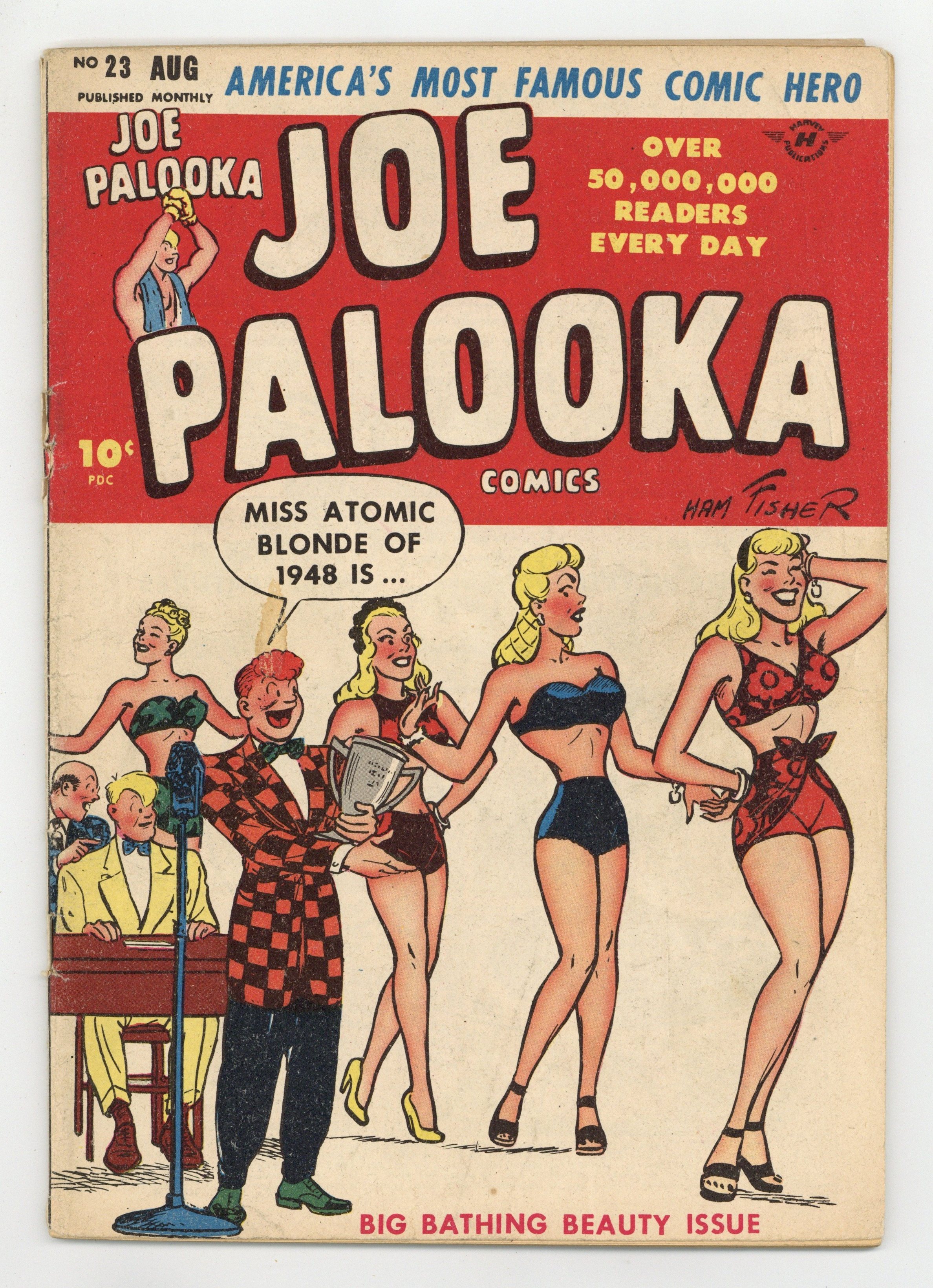 Cover by Ham Fisher (credited). Stories and art by Ham Fisher, C.C. Beck, Lee Elias and Bob Powell. Ham Fisher's comic-strip boxer has adventures both inside and outside the ring. Joe and Knobby are roped into judging a bathing-beauty contest. Flyin' Fools Chickie and Gootch join an air carnival and meet Penny Antee and her trouble-prone pooch, Champ. Plus a war bonds PSA by Fisher and two prose adventures of early female superhero Black Cat. Also featuring a Tootsie Roll ad, "Captain Tootsie Tames a Tornado," with art by Shazam creator C.C. Beck. The Big Bathing Beauty Contest; Joe's Public; Accidental Punch; Knobby's Art Lesson; On the Air With Knobby; Knobby's Big Deal; Flossie; Chickie Ricks The Flyin' Fool; Winnie the Waitress; Black Cat: Fatal Blunder; Black Cat: Marked Terror; Little Max Lends a Helping Hand. 52 pages, Full Color. Cover price $0.10.