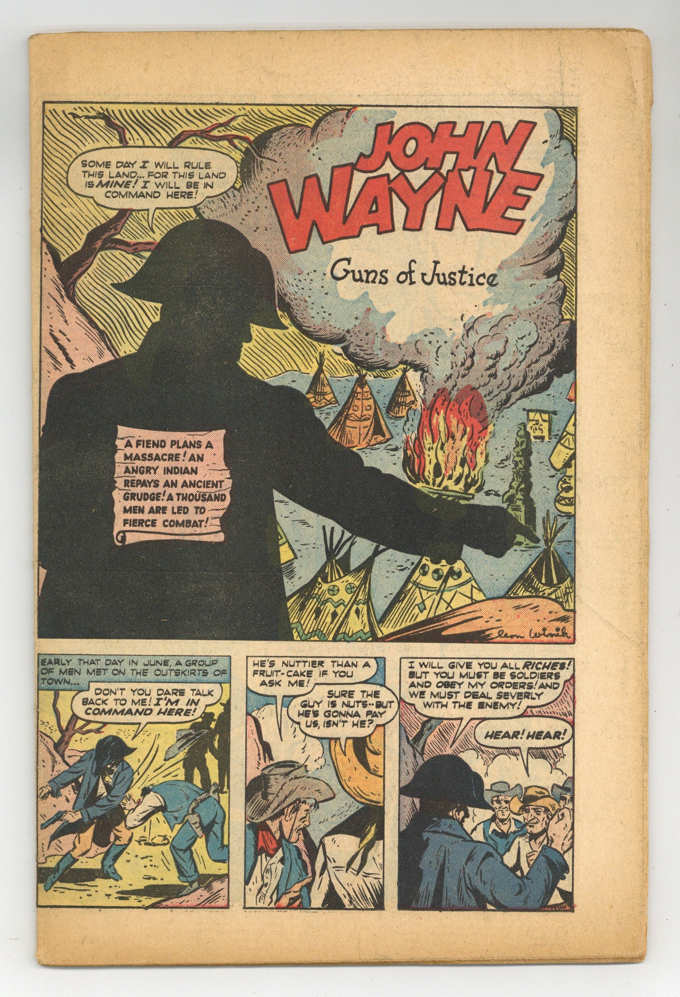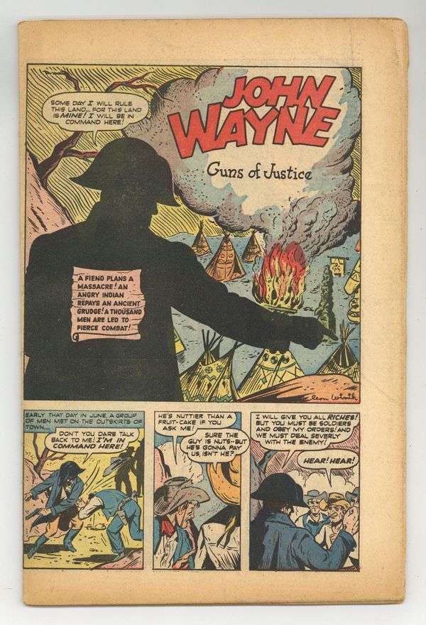 John Wayne photo cover. Double Danger starring Wayne, art by Leon Winik; a fiend plans a massacre; an angry Indian repays an ancient grudge; a thousand men are led to fierce combat. Dude Ranch humor page, art by Harry Betancourt. Li'l Fish humor page by Mel Lazarus. The Panther Man, pencils by Al Williamson, inks by Frank Frazetta. Prospector Pete humor page by Art Helfant. Facts about cowboy's saddles, the parts and types. Hi, Tumbleweed! Watcha Doin? starring Tumbleweed Tim and Chuck, script and art by David Tendler. Incident in the North text story by Benton Rice. Black Gold starring Wayne. Ad for Lil Abner, John Wayne, Captain Tootsie, and Truly Teen-Age Magazine. 52 pgs. $0.10. Cover price $0.10.