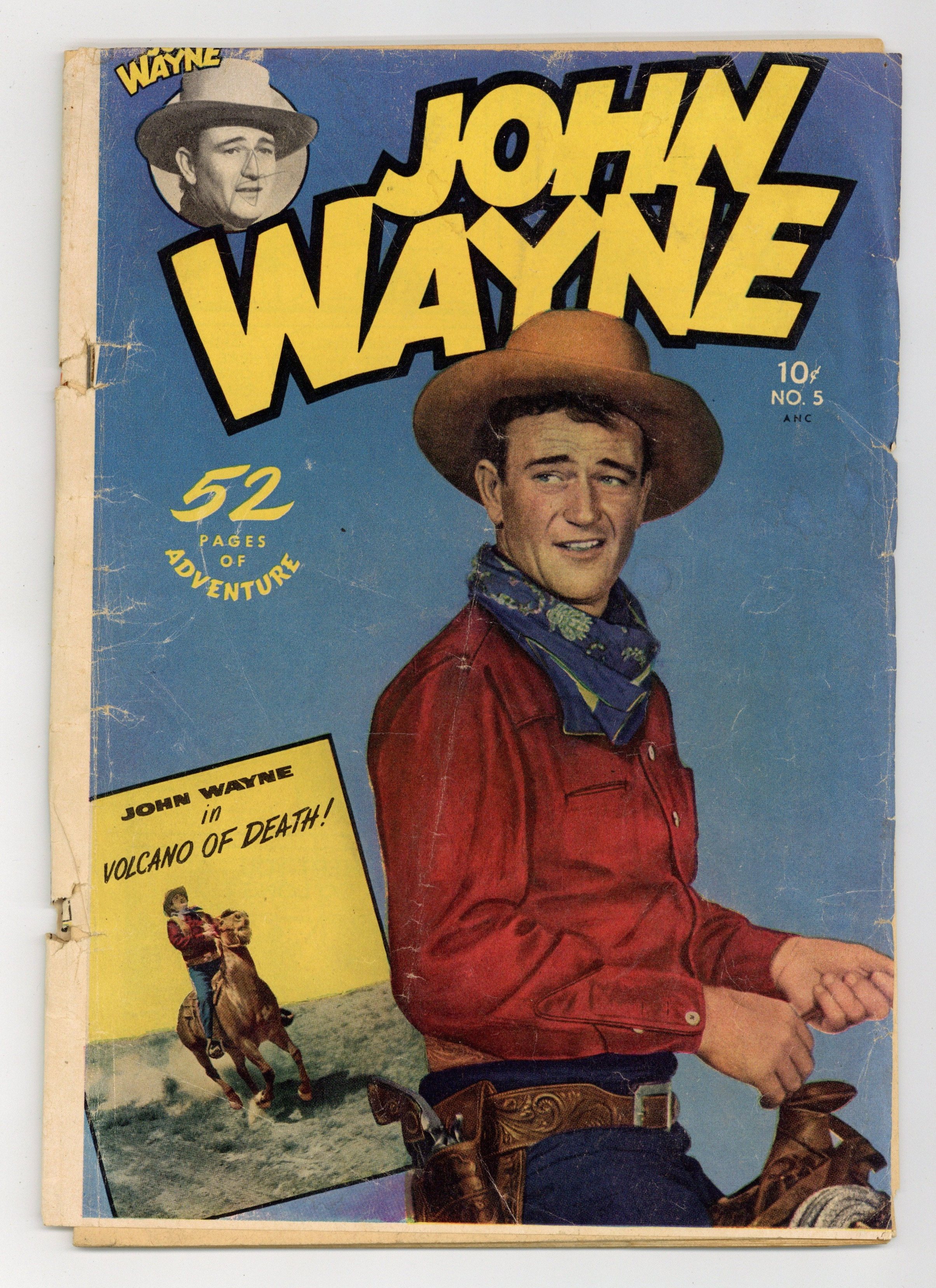 John Wayne photo cover. Festival of Crime; into a nightmare of murder and carnival flim-flam, John Wayne plunged to battle a strange murderer in a dreamland of trick mirrors, revolving drums, and sliding floors. The Volcano Of Death starring Wayne. The Raiders of Blush Pine starring Wayne, art by Leon Winik. The Deadwood Coach Makes It text story. Pot-Shot Pete vs. Two-Gun Zilch, script and art by Harvey Kurtzman. The Rebels of Rio starring Wayne, art by Martin Thall (as Marty Rose). Ad for Lil Abner, John Wayne, Captain Tootsie, and Truly Teen-Age Magazine. 52 pgs. $0.10. Cover price $0.10.