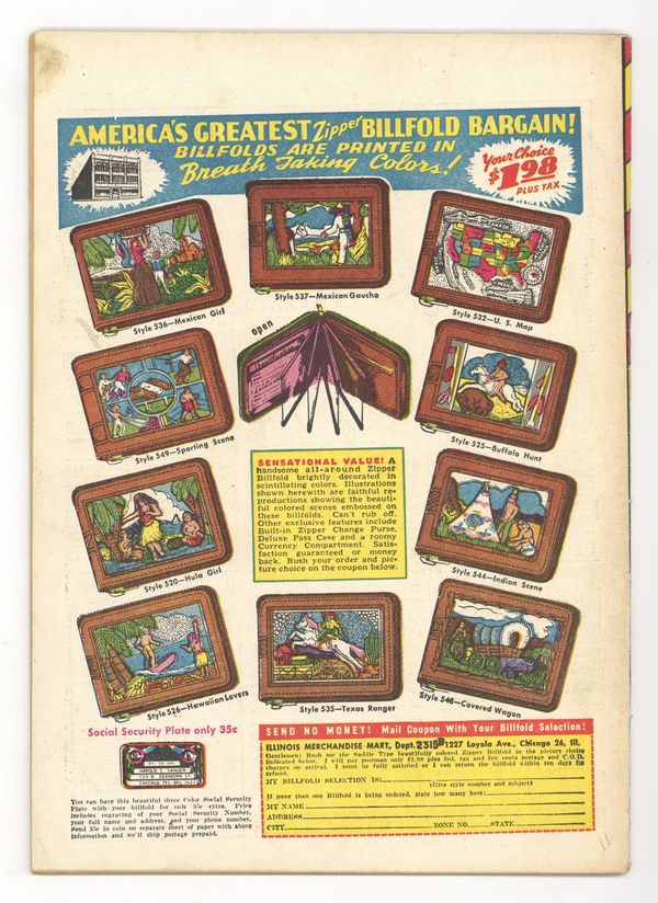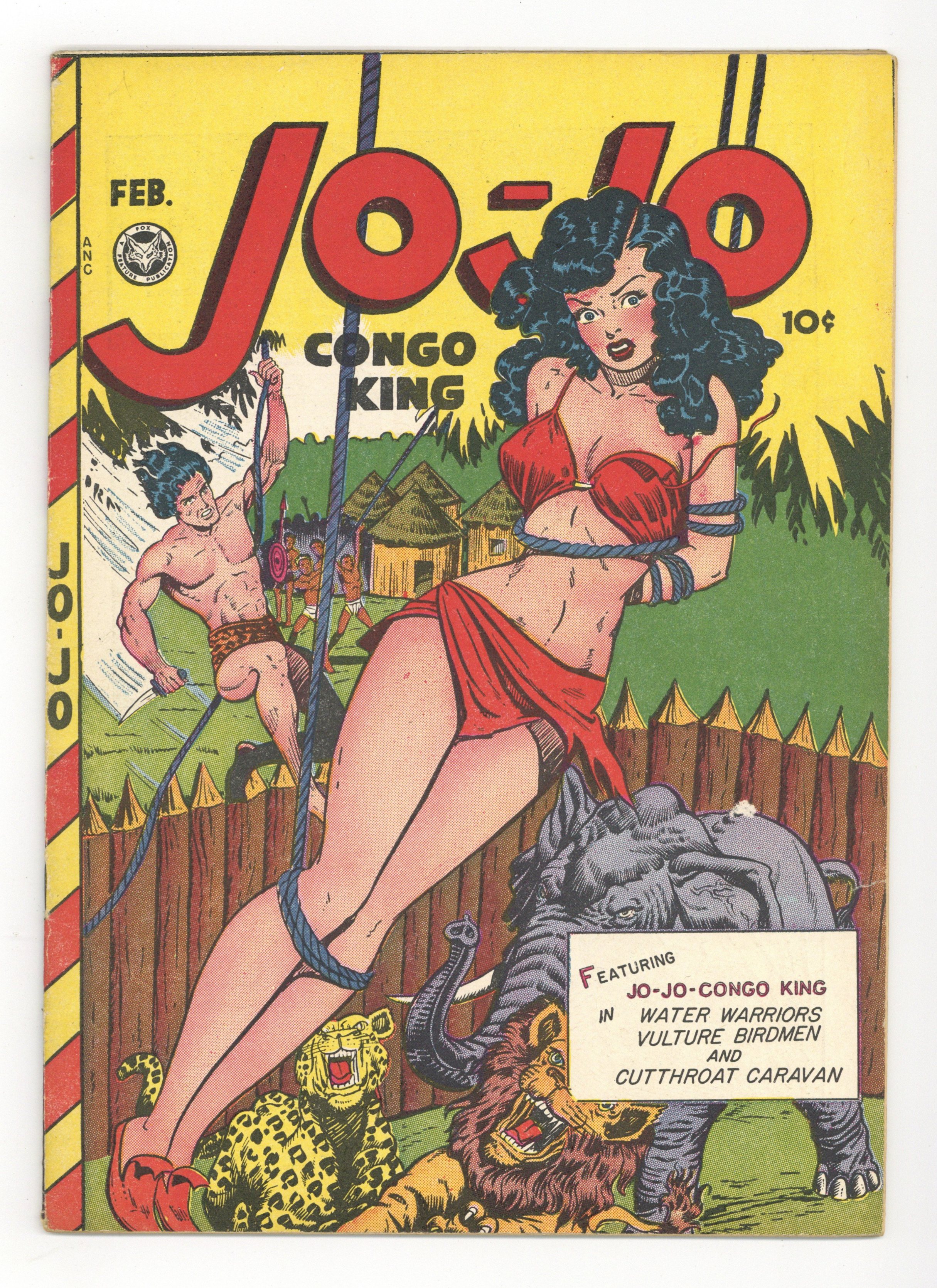 Jack Kamen bondage cover. In order of appearance: "The Water Warriors!"; "The Cutthroat Caravan"; and "Vulture Birdmen!". "Decoy for Death" text story reprinted in Jo-Jo Comics (1945) #18, Famous Crimes (1948) #13, and Famous Crimes (1948) #51 and retitled and reprinted as "Brother of Death" in All Famous Police Cases (1952-54) #14. Indicia states "JO-JO". 36 pages. Full color. Cover price $0.10.
