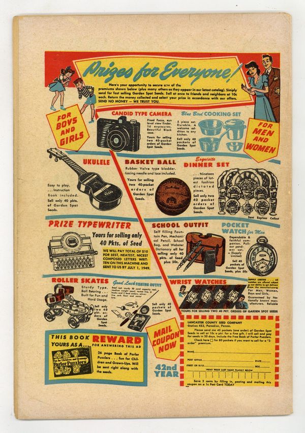 Published May 1949 by Timely/Marvel.$85.00- Centerfold detached at one staple. Cover oxidation.