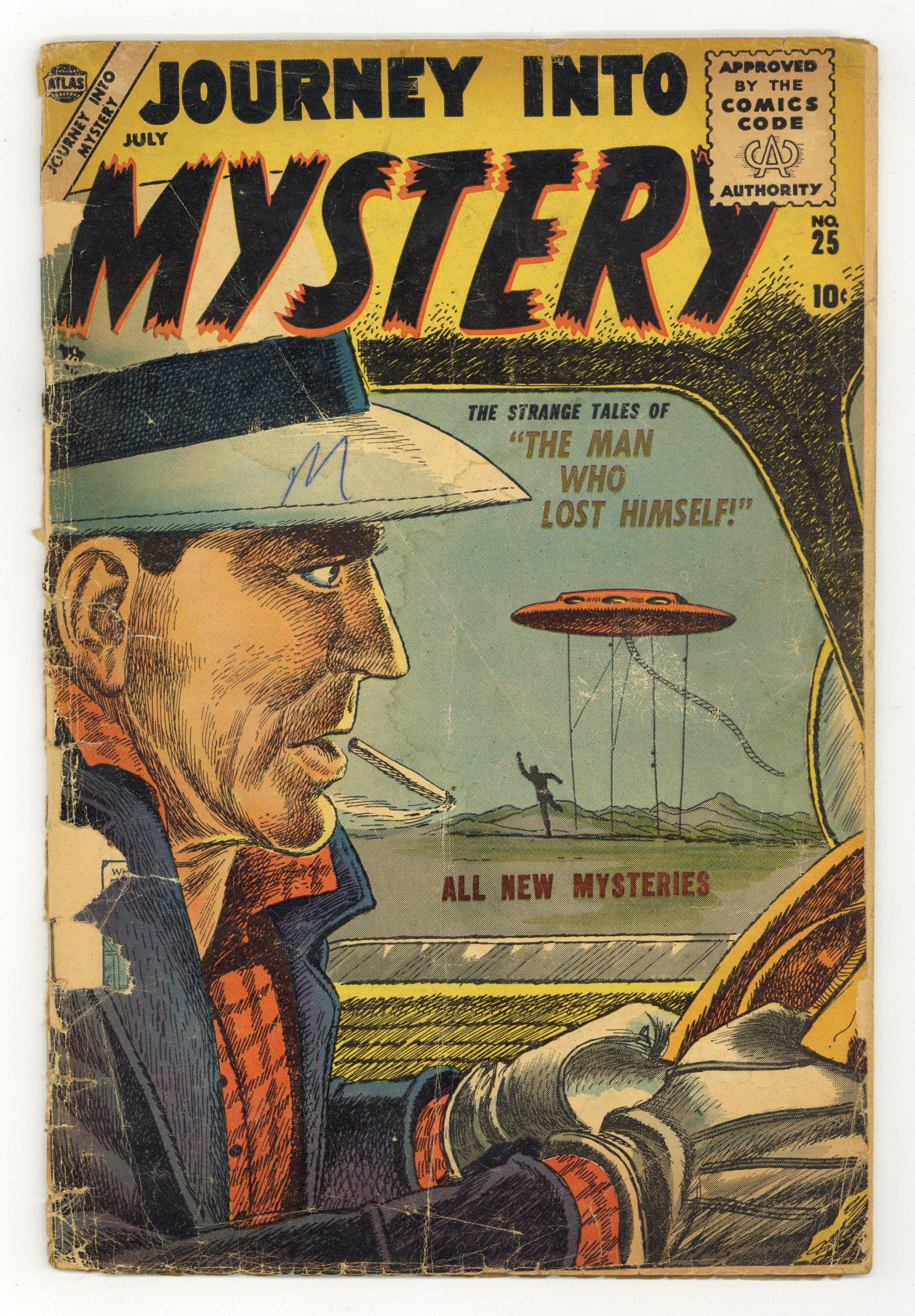 Cover art by Carl Burgos. "The Man Who Lost Himself!," art by Vic Carrabotta; Aliens remove a man's memory so that he will not disclose their presence. "Make a Wish" text story. "At Your Service!," script by Paul S. Newman, art by Jack Katz; This story is told from the point of view of a genie who makes selfish wishes boomerang on people but grants unlimited wishes to the selfless. "The Little Man!," pencils by Dick Ayers, inks by Ernie Bache; A man who thinks himself unimportant unintentionally foils a plot of a couple of terrorists to bomb the UN building. "Foster's Fate!," script by Carl Wessler, art by Ann Brewster; A soldier wants his buddy to meet his sister but he has already fallen for a girl he's met. "Miracle On Maple Street!," script by Carl Wessler, art by Joe Sinnott; A puppeteer's puppets exhibit excellent carpentry skills to give an old town a makeover in response to a mayor's request. 36 pgs., full color. $0.10. Cover price $0.10.