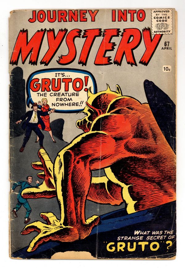Cover by Steve Ditko. "Gruto! The Creature from Nowhere!," pencils by Jack Kirby, inks by Dick Ayers; A journalist convinces the public that an amnesiac alien is a menace in order to make a better story. "The Black Clock!," art by Don Heck; A criminal steals a strange clock from an old man, but finds that it is cursed. "The Last Voyage of Captain Kragg," art by Steve Ditko; A cowardly space pilot flees a battle until his spaceship runs out of power and he crashes into a bog on an Earth-like planet. 36 pgs., full color. $0.10. Cover price $0.10.