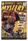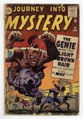 First 12-cent cover price. Corrected Version with 12 cent cover price inside circle. Cover pencils by Jack Kirby, inks by Dick Ayers. "The Genie with the Light Brown Hair!," pencils by Jack Kirby, inks by Dick Ayers; A man finds a genie and uses it to fulfill his selfish whims; The genie finally persuades him to let him return to his bottle, but tricks him into allowing himself to be trapped there too. "Mind Over Matter!," art by Don Heck; A thief meets a lama in the foothills of the Himalayas and is amazed by the feats that he can accomplish with yoga. "Follow the Leader," pencils by Jack Kirby, inks by Dick Ayers; Space explorers are attacked by alien animals, and only make the situation worse by killing the largest beast, which was actually a robot holding the animals in check. "Escape to...Nowhere!," script by Stan Lee, art by Steve Ditko; A convict in a prison hospital is set to return to death row when he is better so he doesn't want the doctor to dismiss him. Ad for Amazing Adult Fantasy. 36 pgs., full color. $0.12. Cover price $0.12.