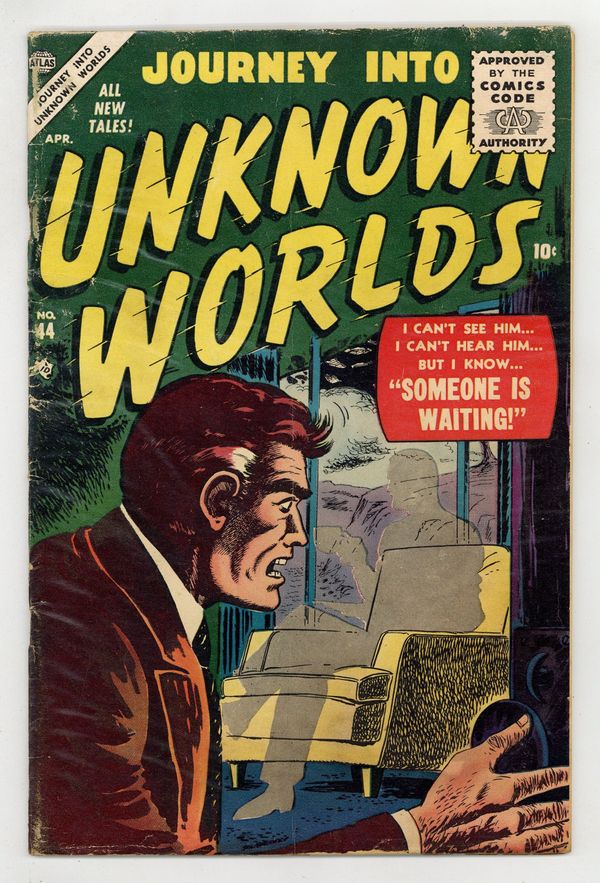 Cover by Sol Brodsky. Stories by Carl Wessler and unknown. Art by Bob Forgione, Bob Powell, John Forte, Carl Burgos, Joe Orlando, Paul Reinman and unknown. He can't see him...he can't hear him...but he knows that..."Someone Is Waiting!" with art by Bob Forgione. Also in this issue: "Where the Dinosaurs Roam" with pencils by Bob Powell; "The Blue Men!" by Carl Wessler and John Forte; "The Wrong World!" by Carl Wessler and Carl Burgos; 2-page text story "The Strong Man"; "Enchanted Town!" by Carl Wessler and Joe Orlando; and "They Come By Night" by Carl Wessler and Paul Reinman. 32 pages, full color. Cover price $0.10.