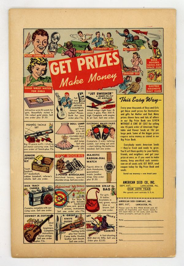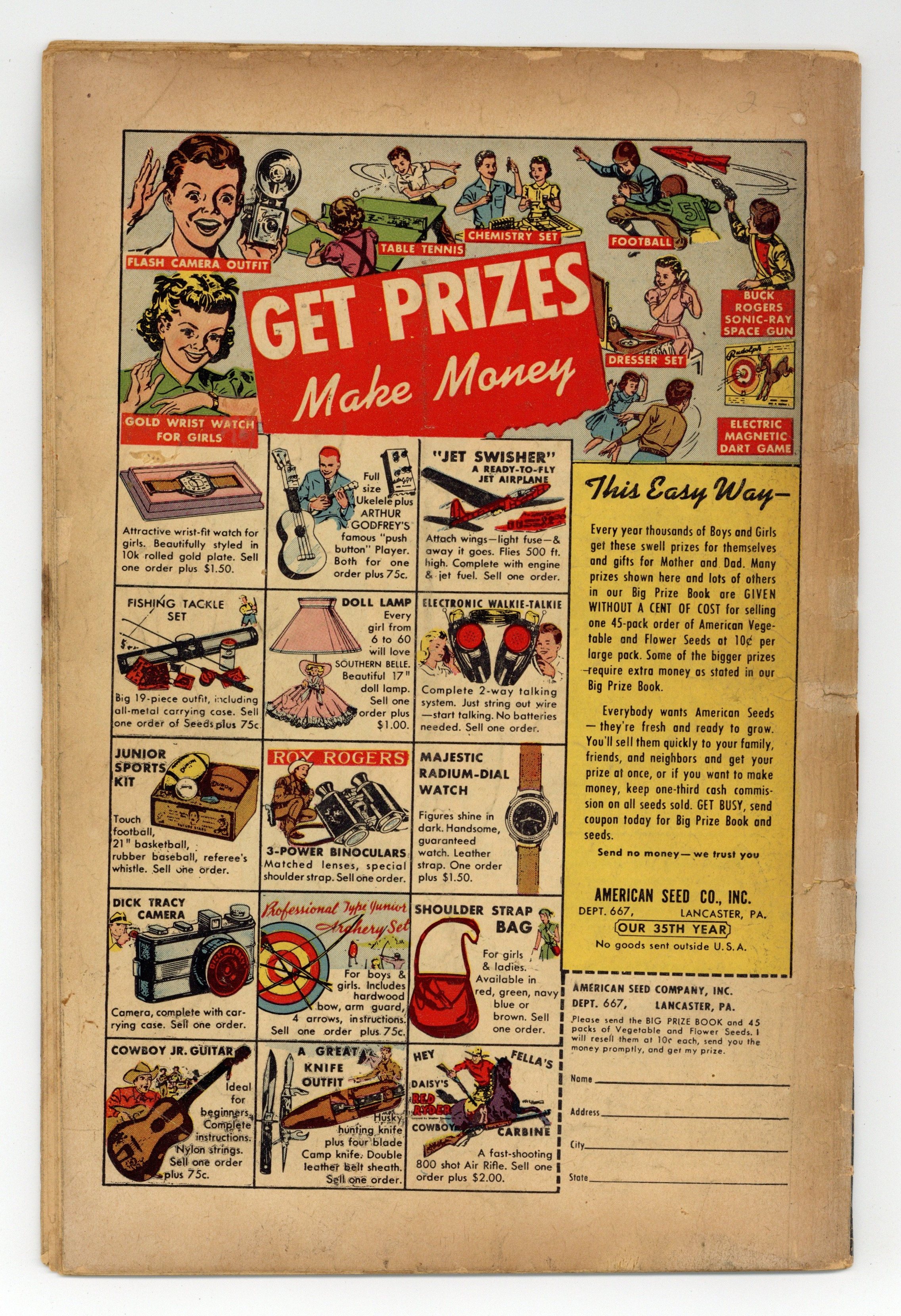Published 1952 by Marvel/Atlas.$95.00- 5" Cumulative spine split (taped). Tape under staples. Staple rust. Soiling on interior pages. Water damage. Oxidation.