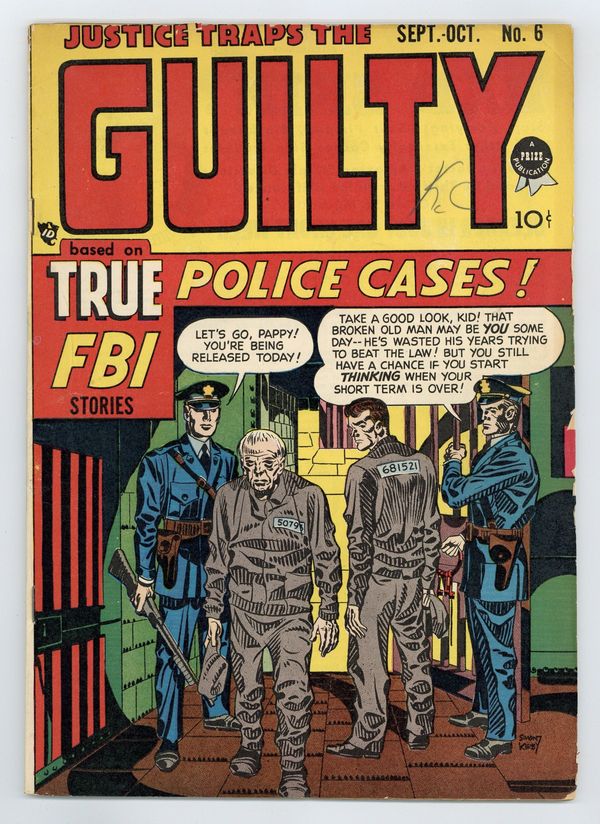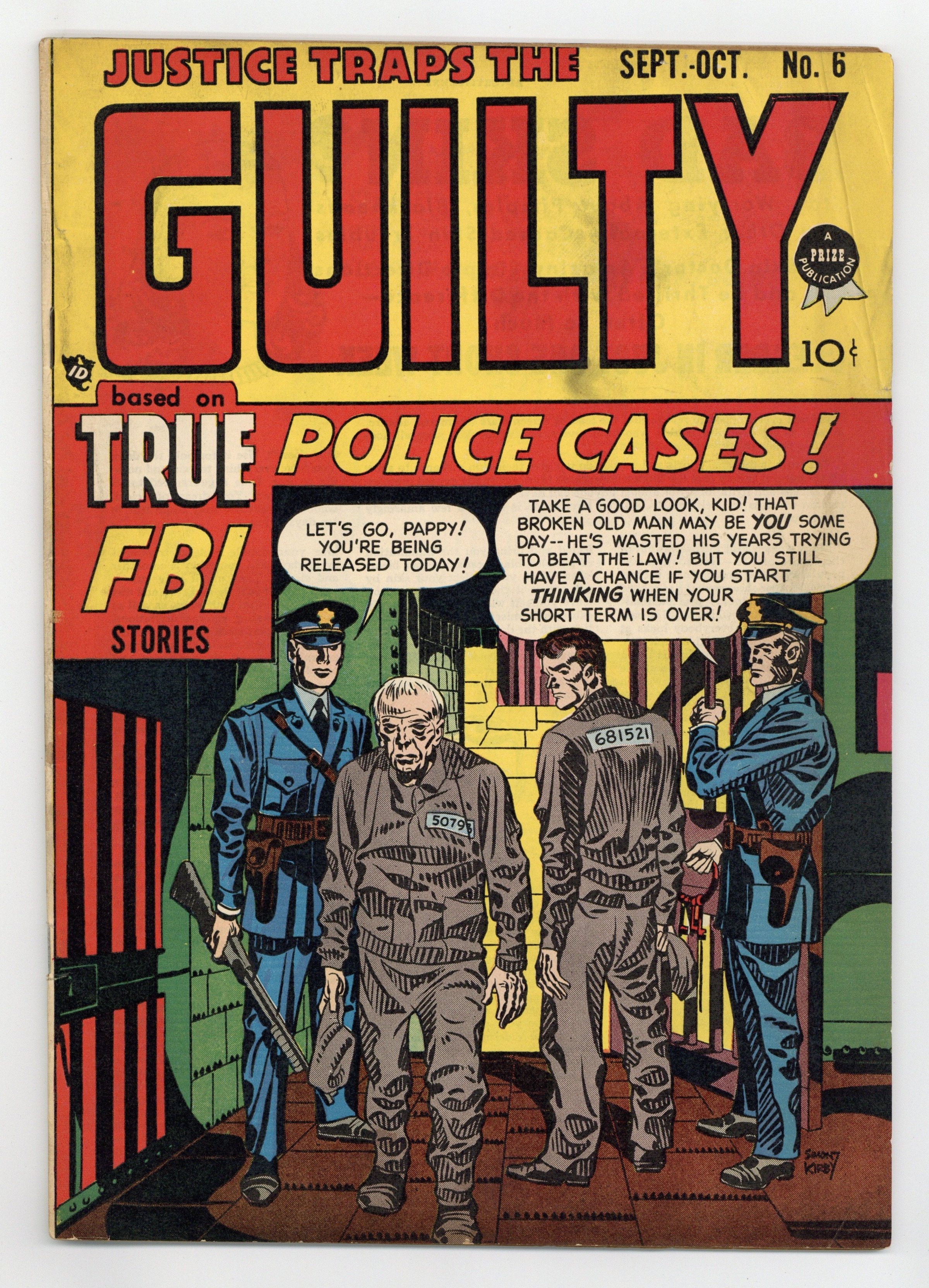 Cover pencils by Jack Kirby, inks by Joe Simon. The Money-Making Machine Swindlers!, pencils by Jack Kirby, inks by Joe Simon; Stella Brady exposes a counterfeit money operation. Mind Over Murder!; Sigmund Turner of the Viennese Police turns the tables on Jack Benjamin, who has hidden his murder weapon. 3 Sinister Salesmen, art by A. C. Hollingsworth. The Capture of 'One-Eye'!, art by Al Feldstein and Jack Kirby. Gerald Woodworth... The Vanishing Bandit. Ad for Romance Comics. 52 pgs. $0.10. Cover price $0.10.