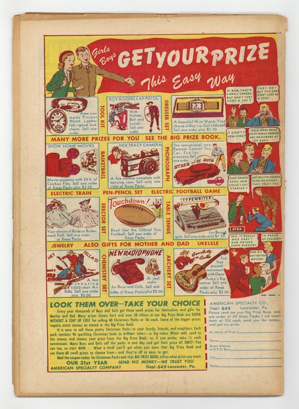 Published Jan 1950 by Prize/Headline.$40.00- 2 1/2" spine split from top. Cover oxidation.