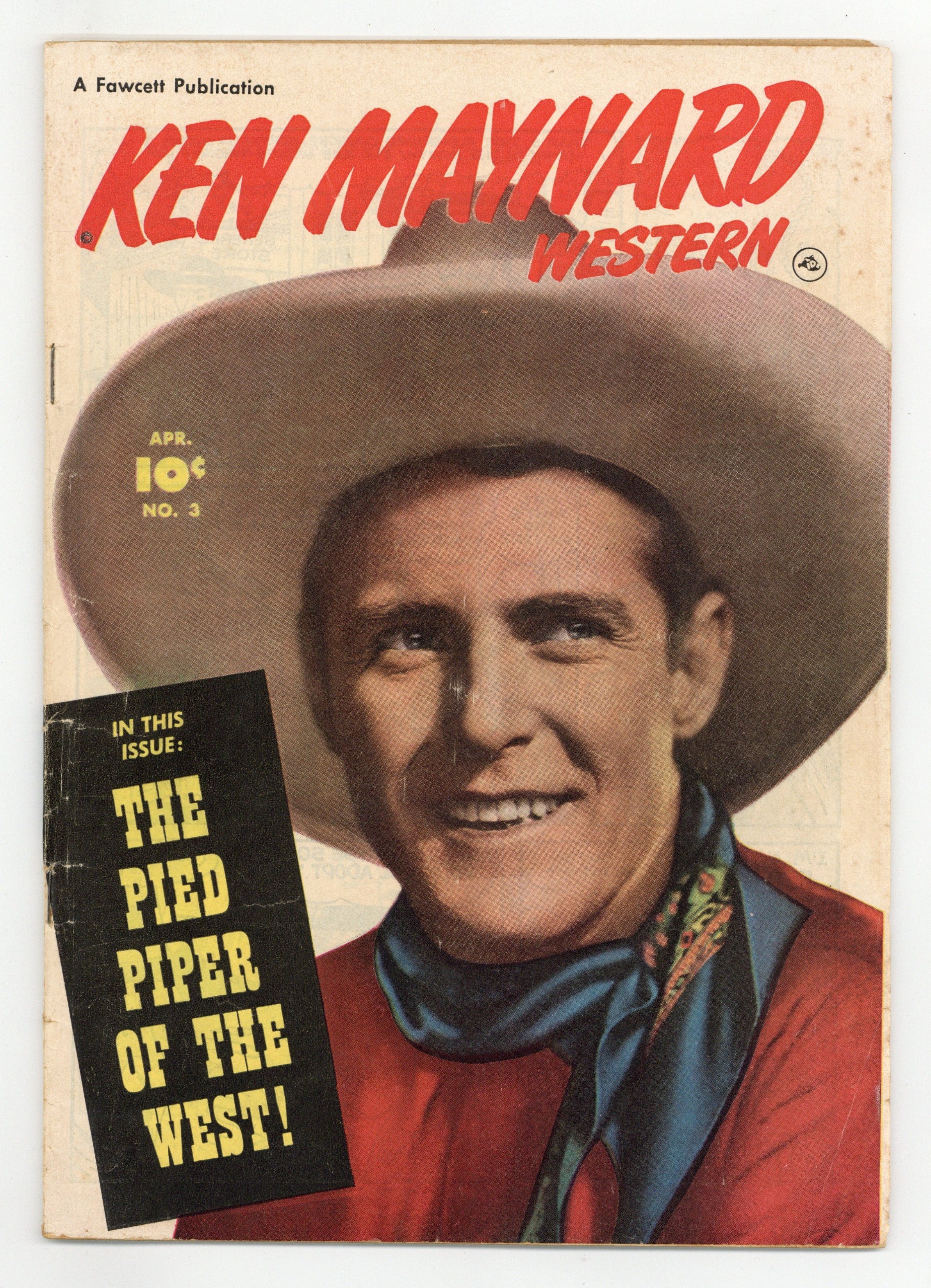 Photo cover. "The Pied Piper of The West" Chapter I…The Animal Invasion, script by Otto Binder, art by Carl Pfeufer; Almost every night some farm would get raided by rabbits; Then a Pied Piper shows up and offer his help to get rid of the rabbits, by using his flute. "Soft Touch"; Jeeter wants a cup of coffee, but has only a hundred dollar bill. "The Pied Piper of The West, Chapter II" The Coyote Peril, script by Otto Binder, art by Carl Pfeufer; After being flung into the river by Piper and his gang, Ken is saved by his horse, Tarzan. Untitled story; Sluff and Duff are out to take a picture. "Revenge in Red Canyon" text story by Al Packer. "The Pied Piper of The West" Chapter III The Mountain Lion Menace, art by Carl Pfeufer; Ken is chased by a herd of stampeding sheep, and is later trapped by the Piper in a corral full of mountain lions. 36 Pages, Full Color. Cover price $0.10.