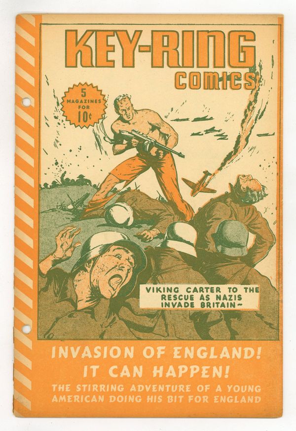 RED COVER VARIANT. Dell sold Sky Hawk along with four other comics (Viking Carter, Sleepy Samson, Greg Gilday, Radior) as a set of 5 comics for 10 cents in 1941. This issue features Viking Carter, protecting Britain from the Nazis. 7-in. x 10.25-in; 2-color printing; 16 pages-all newsprint. Cover price $0.10.