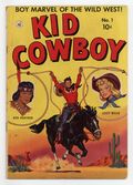 Cover by John Buscema. Stories and art by Ogden Whitney and Bob Brown. Baby-faced gunslinger Kid Cowboy fights for justice in the Old West with his sidekick, Red Feather. The issue opens with Kid Cowboy's origin story, as young Randy survives a wagon train attack and is adopted by the Pawnee. By the time he returns to his step-father's family as a teen, he has a gift for gunplay and a yen for justice. Kid Cowboy and his blood-brother Red Feather realize that corrupt "Indian agent" Jenkins is deliberately starving the Apaches, hoping to provoke a war. Kid Cowboy and Red Feather track the Corbitt gang to a blizzard-swept mountain, but first they must survive a grizzly bear attack. Plus the stories of Wild Bill Hickok, Billy the Kid and Custer's Last Stand. Cover by future Marvel and Conan legend John Buscema. Heroes of the West: Wild Bill Hickok; Kid Cowboy; Treachery on the Prairie!; The Corbitt Gang; A Killer Strikes at Dawn!; Western Desperadoes: Billy the Kid; Custer's Last Stand! 32 pages, Full Color. Cover price $0.10.