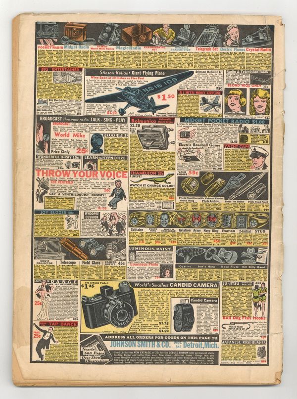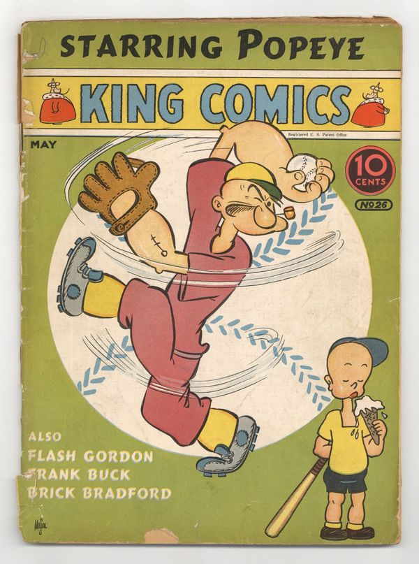 Cover by Joe Musial. Edited by Ruth Plumly Thompson (sometimes credited as Jo King). Stories and art by William Ritt, Clarence Gray, Brandon Walsh, Nicholas Afonsky, Carl Anderson, Jack Burnley, R. J. Scott, Marge Buell, Eddie Sullivan, Charlie Schmidt, Lee Falk, Phil Davis, E. C. Segar, George Clarke, Lou Hanlon, George McManus, Otto Soglow, Eddie Rickenbacker, Clayton Knight, Romer Grey, Charles Flanders, Ruth Plumly Thompson, Bob Dunn, Don Moore and Alex Raymond. Pioneering comics publisher David McKay presents an anthology series featuring reprints of King Features Syndicate comic strips. Mandrake the Magician and Lothar continue their adventures in the land of Dementor; the King of the Royal Mounted's quiet vacation in the woods doesn't go as planned. Also features early art by Little Lulu creator Marge Buell. Brick Bradford; Little Annie Rooney; King Kojo; Henry; Sport Features; Scott's Scrapbook; Hall of Fame of the Air; Sentinel Louie; Radio Patrol; Mandrake the Magician; Thimble Theatre; Flash Gordon; The G-Man; Bringing Up Father; The Little King; Ace Drummond; Ted Towers, Animal Master; King of the Royal Mounted; King Kojo's Easter Egg; Sis Sez; Dun-Dums. 64 pages, Full Color. Cover price $0.10.