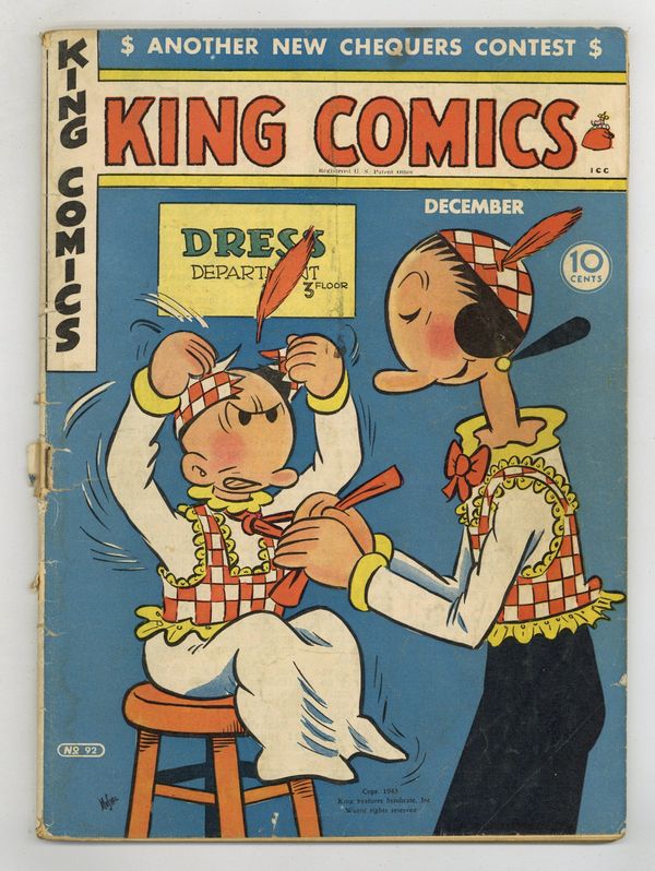 Cover by Joe Musial. Edited by Ruth Plumly Thompson (sometimes credited as Jo King). Stories and art by William Ritt, Clarence Gray, Fran Striker, Brandon Walsh, Nicholas Afonsky, Carl Anderson, Jack Burnley, R. J. Scott, Eddie Sullivan, Charlie Schmidt, Lee Falk, Phil Davis, Tom Sims, Bela Zaboly, George McManus, Otto Soglow, Eddie Rickenbacker, Clayton Knight, Charles Flanders, Ruth Plumly Thompson, Frank Miller, Don Moore and Alex Raymond. Pioneering comics publisher David McKay presents an anthology series featuring reprints of King Features Syndicate comic strips. Flash Gordon crosses the Jungles of Mongo; Police, tribal leaders, and ordinary people want The Phantom because of his duplicate's crimes. Brick Bradford; The Lone Ranger; The Phantom; Little Annie Rooney; Henry; Sport Features; Scott's Scrapbook; Hall of Fame of the Air; Sentinel Louie; Radio Patrol; Mandrake the Magician; Thimble Theatre; Flash Gordon; Bringing Up Father; The Little King; Barney Baxter in the Air; Sappo; Tuffy; Right Around Home; Blondie. 56 pages, Full Color. Cover price $0.10.