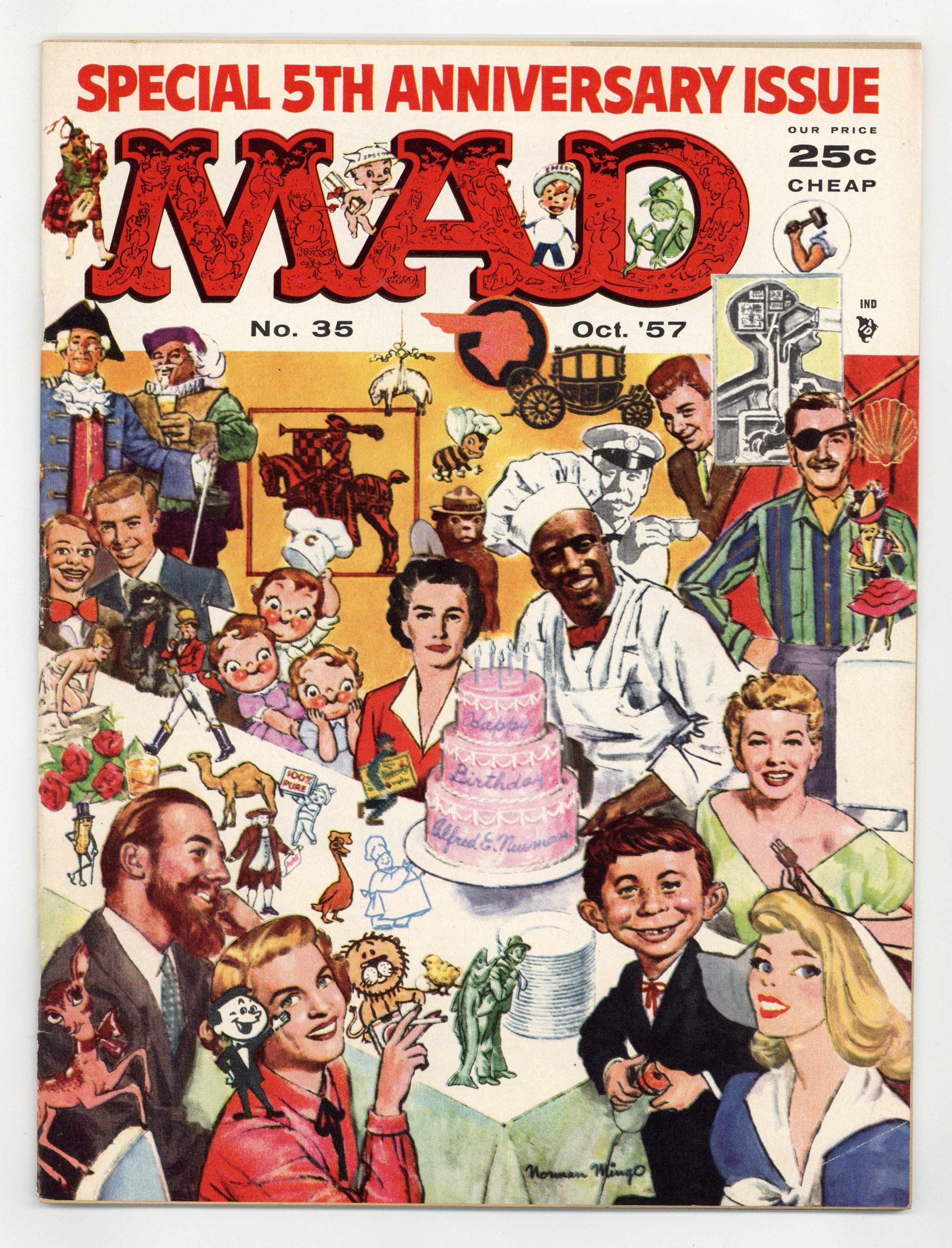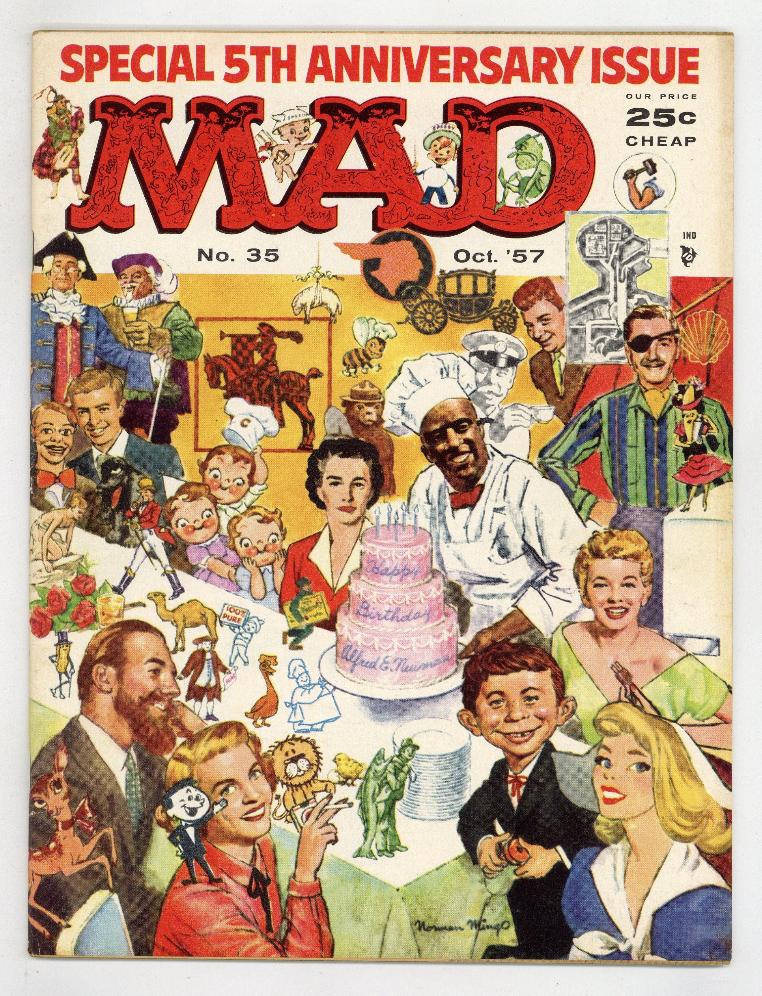 Painted cover art by Norman Mingo. "Cars To Match Careers," script by Frank Jacobs, art by Bob Clarke; Ideas for cars designed to show off something about their owner's careers; Text is in verse. MAD Pocket-Sized Books ad. MAD Jewelry ad. "Backyard Barbecue," script and art by Dave Berg; The problems and future of life at the outdoor grill. "The Hunting Song," script by Tom Lehrer, art by George Woodbridge. "Future TV Ad" by Don Martin. "How To Crop A Photo," script by Frank Jacobs, art by Wally Wood; Story of Clyde's life told with his cropped photos compared to the originals. "MAD's Up-To-Date Sky," script by Frank Jacobs, art by Bob Clarke; New names for constellations, reflecting modern pop culture. "How To Read Your Palm," script by Frank Jacobs, art by Reed Crandall. "MAD Eating Utensils," art by Joe Orlando. "House To House," script by Bob Elliott and Ray Goulding, art by Mort Drucker; Ed visits with his wife and son on live TV, and ends up thrown out of the house; Parody of "Person To Person" TV show. "The Seaside Incident," script and art by Don Martin. "Sin-Doll Ella," script by Albert Meglin (as Tennessee Williamsburg), art by Wally Wood; A mixture of Cinderella and A Streetcar Named Desire, in which the Fairy Godmother gets the Prince. 52 pgs., B&W. Cover price $0.25.