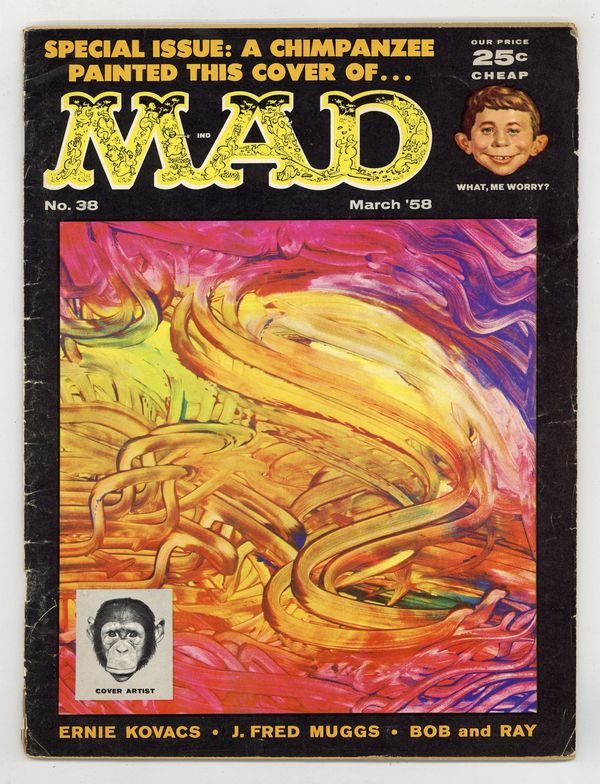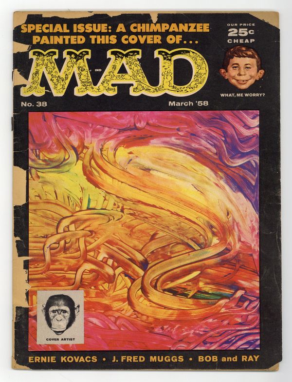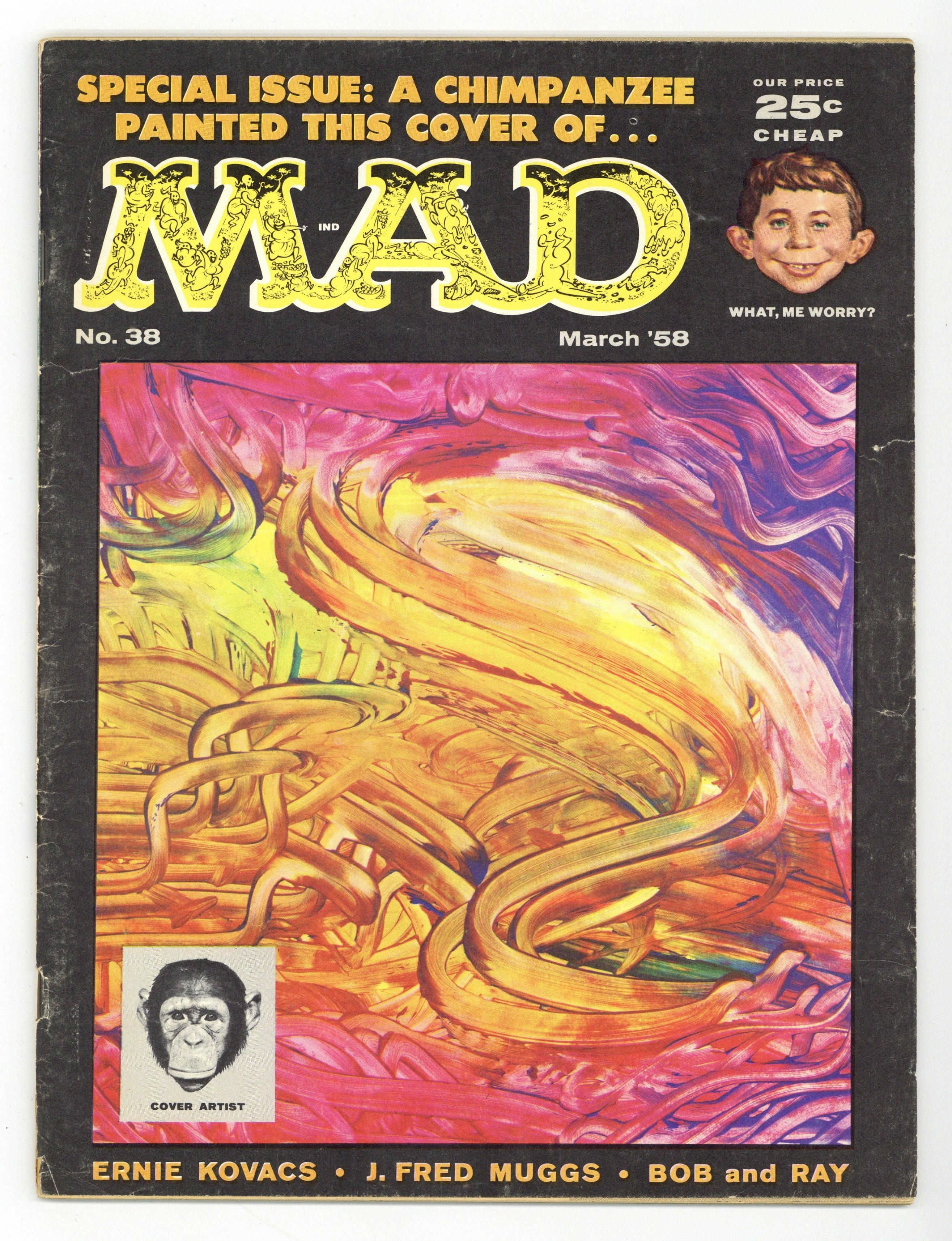 $26.00Painted cover art by J. Fred Muggs and Norman Mingo. "Wha' For...Sports Cars," script by Dave Berg, art by Bob Clarke; Things sports cars can do that normal-size cars cannot. MAD Jewelry ad. "Mike Malice Interviews Mother Goose," script by Dave Berg, art by Mort Drucker; Mike interviews Mother Goose in his hard-hitting style, but gets no answers. "Blood, Guts, A Roscoe & You," art by George Woodbridge. "Outstanding Americans: Arthur A. Freen," script and art by Don Martin; After a series of disastrous automotive inventions beginning in 1934, Arthur invents the Ford Edsel in 1957. "Nobody Has Any Fun At Parties," script by Frank Jacobs, art by Wally Wood; A party that never gets going because the guests spend all night introducing themselves to each other. "Baby Sitting May Ruin Our Nation!", script and art by Dave Berg; Details what could happen if crime syndicates take over baby sitting and advises parents to just stay home. "How Neurotic Are You?", script by Paul Laikin, art by George Woodbridge; Quiz to see if you suffer from common pop culture neuroses. "TV Scenes We'd Like To See," script by E. Nelson Bridwell, art by Joe Orlando. "Bitter Homes And Gardens," script by Tom Koch, art by Wally Wood; Satire of Better Homes and Gardens magazine, with articles on home remodeling and tips for the handyman. 2 one-page stories with Kelly Freas art. 52 pgs., B&W. Cover price $0.25.