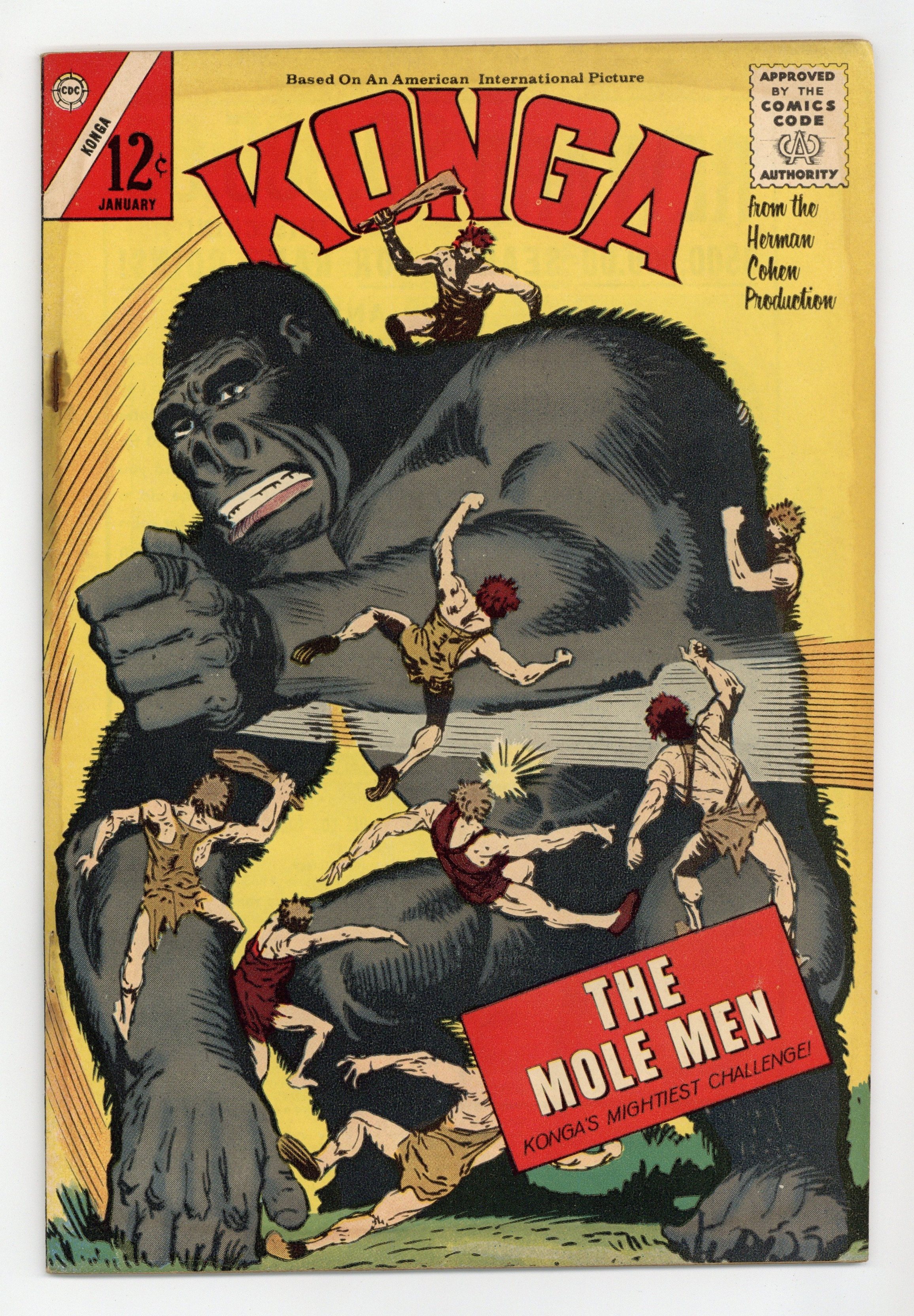 Cover by Steve Ditko. Stories and art by Steve Ditko, Joe Gill and Bill Molno. The monster-sized ape from the 1961 B-movie becomes the star of this popular Charlton monster comic that frequently featured work by future Spider-Man co-creator Steve Ditko. Mutated giants from before the Ice Age emerge from the depths of the Earth. Some great full-page monster scenes by pre-Spidey Ditko. A scientist tries to explore dreams as portals to alternate universes. A man learns the truth about a tree he considers his only friend. Konga and the Mole Men; Millions from Mars; Dreamland; Giants of the Earth; The Tree and I. 32 pages, Full Color. Cover price $0.12.