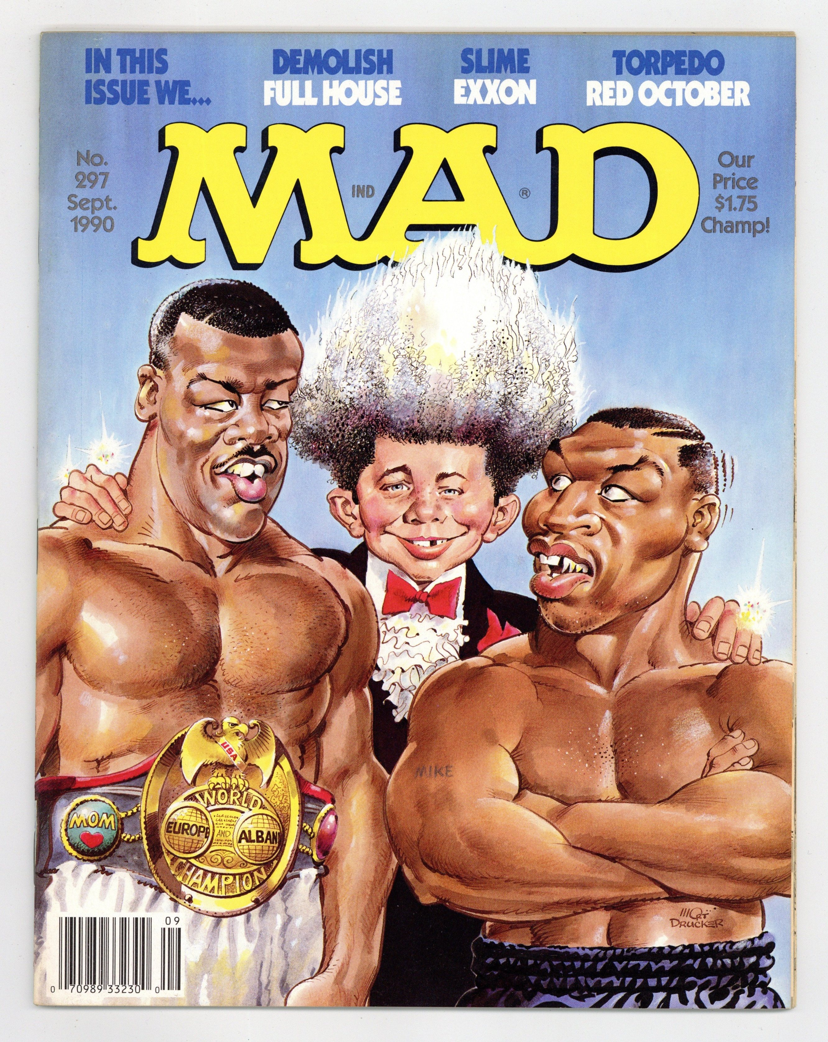 $10.00Cover by Mort Drucker. Stories and art by Al Jaffee, Dick DeBartolo, Michael Goodwin, Charlie Kadau and Joe Raiola, Tom Koch, Stan Hart, Paul Peter Porges, Don (Duck) Edwing, Frank Jacobs, Mort Drucker, Paul Coker Jr., John Pound, Rick Tulka, Tom Bunk, Hy Bender, Mike Snider, Angelo Torres, Bob Clarke, Jack Davis, Dave Berg, and Sergio Aragones. A parody of The Hunt for Red October, and simultaneous spoofs of Full House and America's Funniest Home Videos, featuring art by Mort Drucker and Angelo Torres. Mad's response to the Exxon Valdez oil spill includes a new version of Poe's The Bells, with art by underground comix legend John Pound, and a map of "Exxon Ocean." Telltale signs of adulthood. A lifestyle magazine for smokers, another joke that later became reality. Mad's takes on sports sponsorships, corporate acronyms, and yo-yos. Lighter Side strips by Dave Berg, Marginals by Sergio Aragones, and Spy vs. Spy. Letters page features a photo of Rick Moranis reading Mad's spoof of Honey I Shrunk the Kids. America's Phoniest Home Videos Visits Fool House; The Lyrical Latin Lalapalooza; 12 Sure Signs That You've Reached Adulthood; A Mad Guide to Devolution; Spy vs. Spy; Choke - The Magazine For People Who Enjoy Smoking; A Mad Look at Boxing; What Corporate Initials Really Stand For; The Oil; The Lighter Side of...; When TV Sports Advertisers Decide to "Sponsor" More Than Just Kickoffs & Home Runs; The Torturous Trapeze Travesty; Mad Visits a Modern Day Law School; The Sadistic Sharpshooter's Stunt; Fooling With Food; Hunt For Last October; Unofficial Yo-Yo Tricks Every Kid Knows; Fold-In; Exxon Ocean. 8.5-in. x 11-in., 48 pages, B&W. Cover price $1.75.