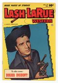 Movie cowboy Lash Larue is known for his trademark black outfit and his skill with a bullwhip. "Roving marshal" Lash trails an outlaw named Hexx (but not Jonah) and learns the truth about the fatal hayride. Lash tries to prevent an illegal cross-border arms deal with Mexican revolutionaries. Dusty suspects his neighbor is going to con him out of twenty bucks, so he decides on a pre-emptive con. The Champs; The Sign of the Hexx!; Wagonwheels; Molasses Mouth; Border Incident; The Misleading Clue!; Dusty: The Chair Trick; The House in the Desert! 32 pages, Full Color. Cover price $0.10.