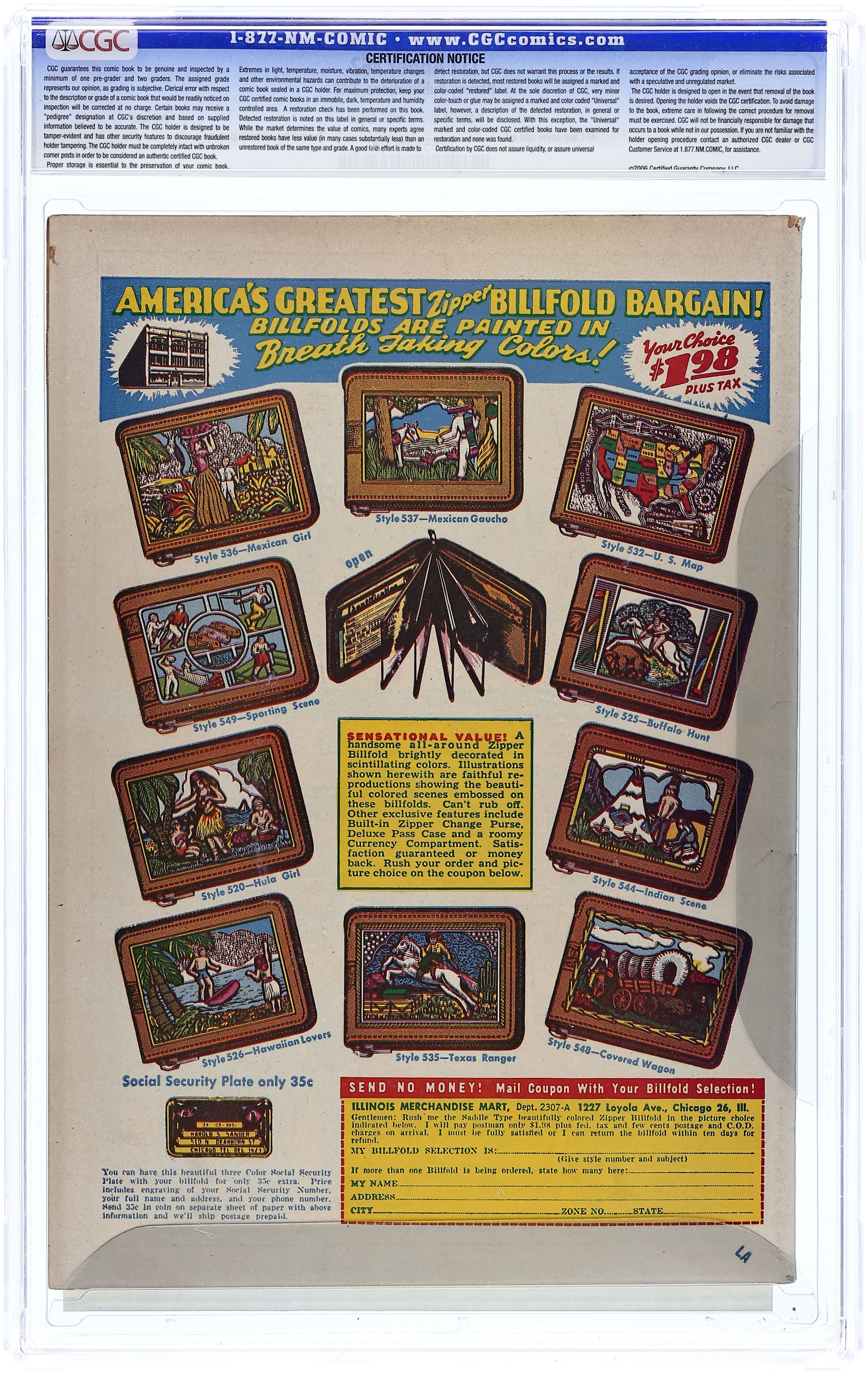 Cover art by Al Capp. A brief biography of Al Capp with a photo. Li'l Abner's Wedding, script and art by Al Capp; Believing he has permanently injured opera singer, Barbara Seville, Li'l Abner marries a dressmaker's dummy, much to the dismay of Daisy Mae. Li'l Abner's Problem, script and art by Al Capp; Daisy Mae's grandma conspire to marry off Daisy Mae to Timberwolf McHowl, and Marryin' Sam tries to shame McHowl into springing for a deluxe $3.00 wedding; Li'l Abner struggles with his marriage to the dressmaker's dummy. Daisy Mae's Discovery, script and art by Al Capp; Daisy Mae and Timberwolf McHowl jilt each other, and neither shows up for the prepaid wedding; An unnamed Dogpatcher marries Hoss-Face McGoon to take advantage of the prepaid $3.00 wedding; Daisy Mae discovers that Li'l Abner is married to a dressmaker's dummy and plans to burn the dummy in an old barbecue pit. Here Is the First Issue of Milton Caniff's Sensational New Comics ad. Danny's Dilemma text story. "That's it, Buddy! That's it! Easy! Easy!, art by Bob Powell; Tommy and Buddy stumlbe onto a crime scene. Puzzle Fun activity page by A. W. Nugent. Death Watch text story. Dick Tracy Two-Way Wrist Radio ad. Terry and the Pirates ad. 52 pgs., full color. Cover price $0.10.