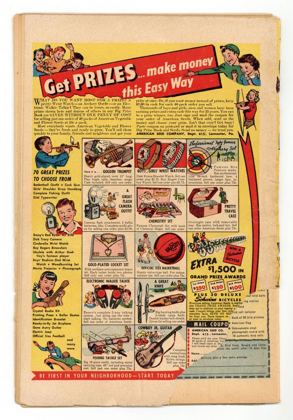 $64.00- 5" Spine split from bottom. Centerfold detached. Cover oxidation. Water damage. Only one staple (manufacturing).