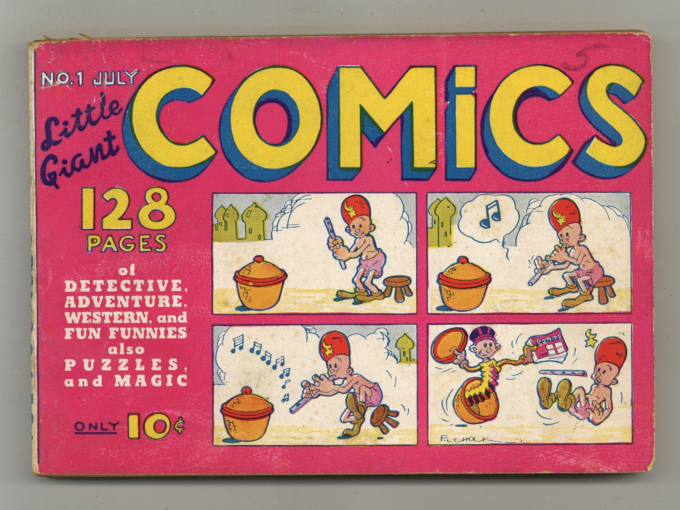 Published Jul 1938 by Centaur Comics.$1,440.00Volume 1, number 1. July 1938. Contains comics, fun activities, puzzles, stories, magic, and interesting facts. 8.5" x 4.75". Color cover with B&W interior. 128 pages. Cover price $0.10.