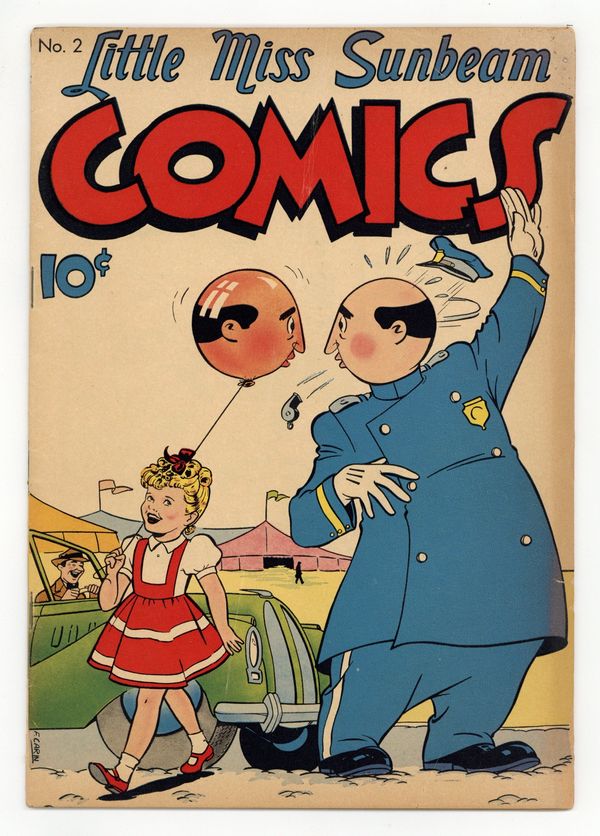 Cover by Frank Carin. Art by Frank Carin and others. Adventures of Little Miss Sunbeam, the bread-company mascot created by Ellen Segner. A promotional series of the same title was also published as a giveaway. The kids find a magician's suitcase and decide to put on a magic show of their own; A grocer's least favorite customer has to try everything in the store; The gang accidentally frees a circus tiger and tries to help recapture it. What's Wrong with This Picture?; Out West; Toothy Snyder, Delivery Boy; The Magic Suitcase; Danger Road; Gus the Grocer; Little Dog Gone!; Sunbeamland Puzzle Page. 32 pages, Full Color. Cover price $0.10.