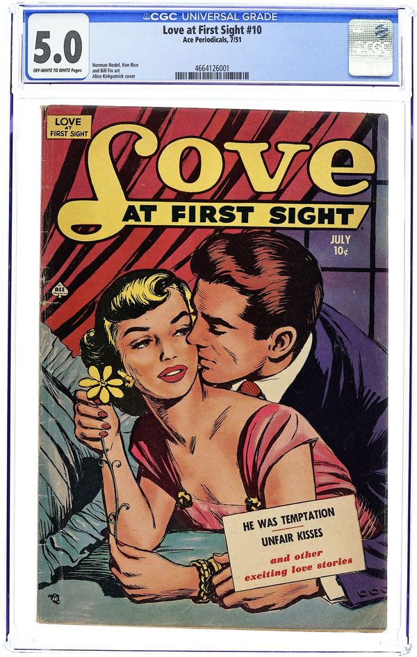 In order of appearance: "Unfair Kisses" reprinted in Complete Love Magazine Vol. 31 (1955) #6; "The Other Girl in His Life" reprinted in Love Experiences (1949) #38b and Complete Love Magazine Vol. 26 (1951) #4; "He Was Temptation"; and "Stand-In for Love". "Your Charm Guide: Make the Most of Makeup, At the Perfume Counter" text article reprinted as "The Charm Corner..." in Real Love (1949-56 Ace) #58 and #60 and as "Look Lovelier..." in Ten Story Love Vol. 36 (1955) #3. 36 pages. Full color. Cover price $0.10.