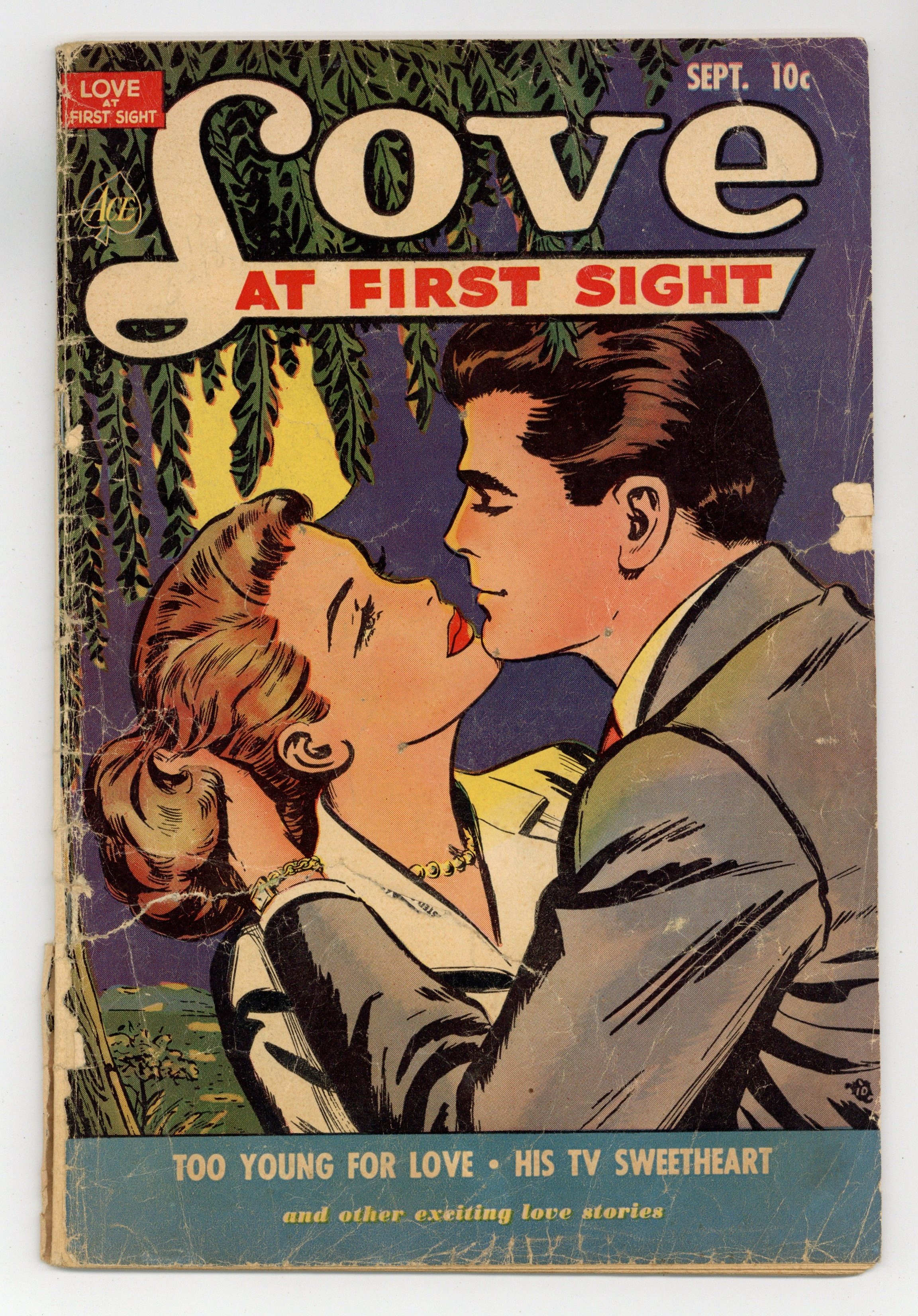 Alice Kirkpatrick cover. In order of appearance: "His TV Sweetheart" reprinted as "No Strings on Him" in Ten Story Love Vol. 36 (1955) #1; "The Bride's Double Life"; "Everything but a Proposal!"; and "Too Young For Love" reprinted in Ten Story Love Vol. 36 (1955) #1. "Your Charm Guide: For Lovelier Eyes, For Beautiful Nails, What to Wear on a Date...To Be More Attractive..." text article reprinted from "Short-Cuts to Glamour..." in All Romances (1949) #6, reprinted as "Short-Cuts to Glamour..." in Love at First Sight (1949) #12, and partially reprinted in "Be Lovely, Be Popular..." in Ten Story Love Vol. 32 (1953) #5 and "Help Yourself to Allure..." in Love Experiences (1949) #32. "Not Jealous!" poem by M. R. 36 pages. Full color. Cover price $0.10.