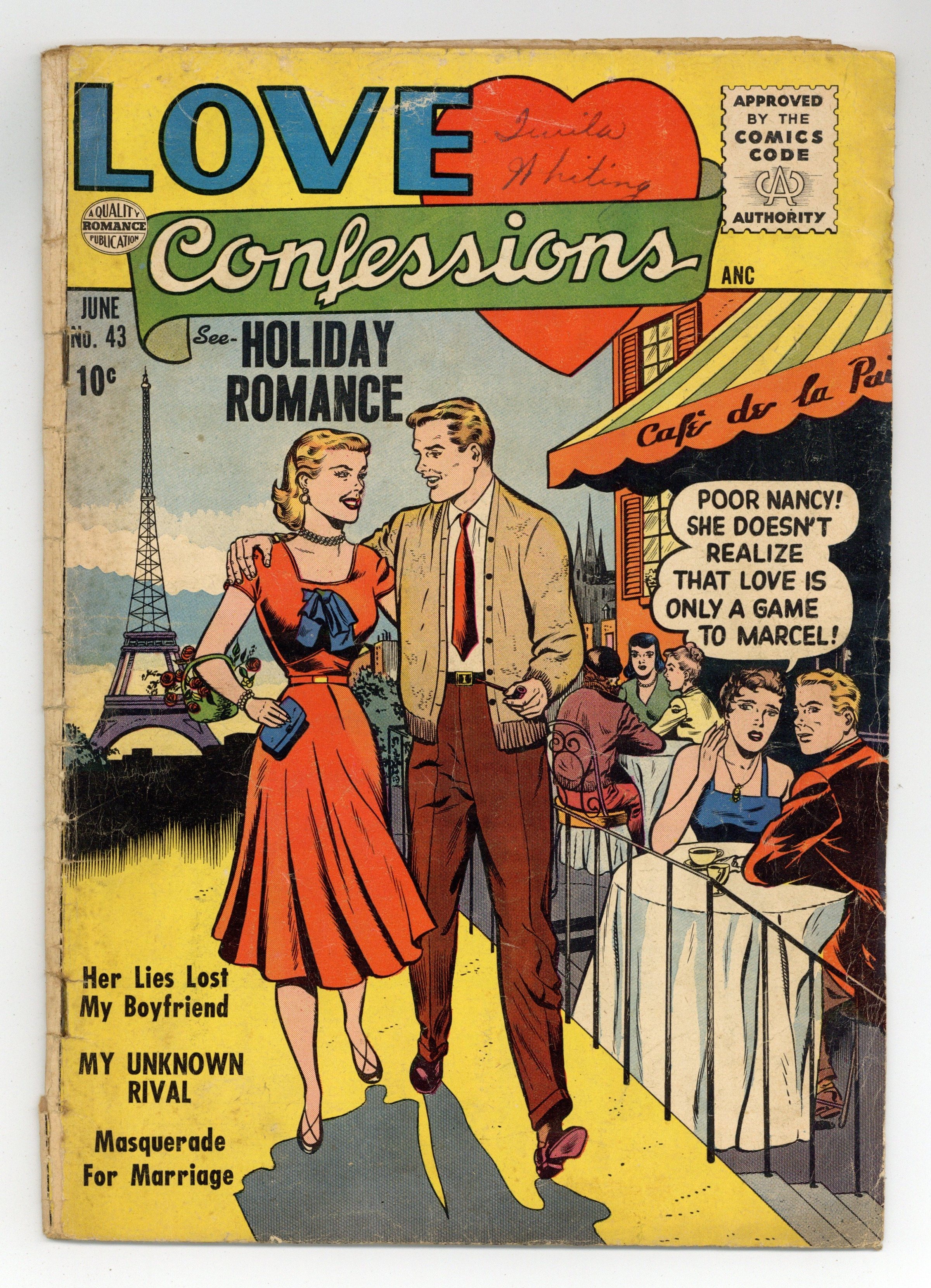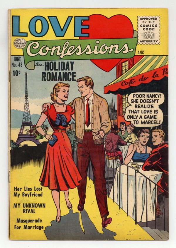 Stories by unknown. Art by John Forte? and unknown. Featuring: "Her Lies Lost My Boy Friend" starring Bob Hunt, Bonnie, Danny Masters, Gloria Dodson and Ted Crane; "My Holiday Heartbreak" starring Captain Andy Elliot, Nancy Dunn, Patty Hegan and Pierre Beauchamp; "Masquerade for Marriage" starring Alma Denton, Madge, Randy Newcomb and Tom Johnson; and "My Unknown Rival" starring Andy Flemming, Betty Elliot, Chuck Flemming, Diana and Kay. Plus: 1-page text story "Love Miser" starring Ed Johnson and Rose. 32 pages, full color. Cover price $0.10.