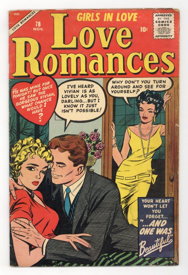 Cover by Matt Baker & Vince Colletta. Edited by Stan Lee. Stories by Stan Lee and unknown. Art by Jay Scott Pike, Vince Colletta, Matt Baker, Tom Scheuer and unknown. Featuring: "The Dancer and the Debutante"; "The Bride with a Broken Heart"; and "First Date!" Plus: He was hers for tonight! But once he saw the gorgeous Vivian, what chance would she have? Your heart won't let you forget..."And One Was Beautiful!" Also: 2-page text story "Music Hath Charms"! 32 pages, full color. Cover price $0.10.