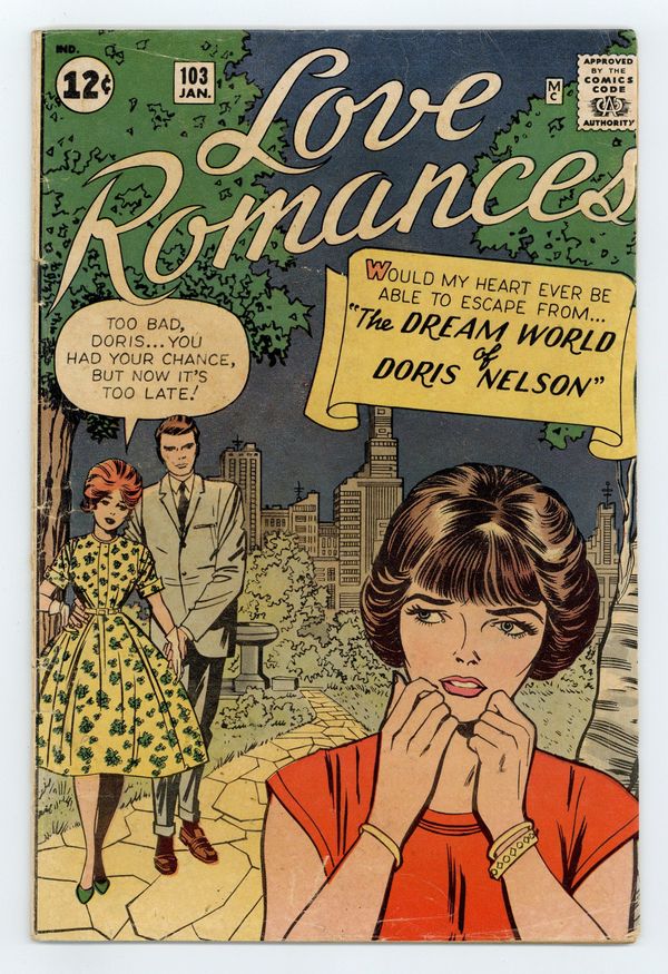 Cover by Jack Kirby & Al Hartley. Edited by Stan Lee. Stories by Stan Lee?, Larry Lieber? and unknown. Art by Jack Kirby, Don Heck and Al Hartley. Doris had her chance...but was it now too late? Would her heart ever be able to escape from..."The Dream World of Doris Nelson!" Also featuring: "From Nine To Five!"; "The Wedding Day"; and "If Your Heart I Break --- !" Plus: 2-page text story "So What's News?" 32 pages, full color. Cover price $0.12.
