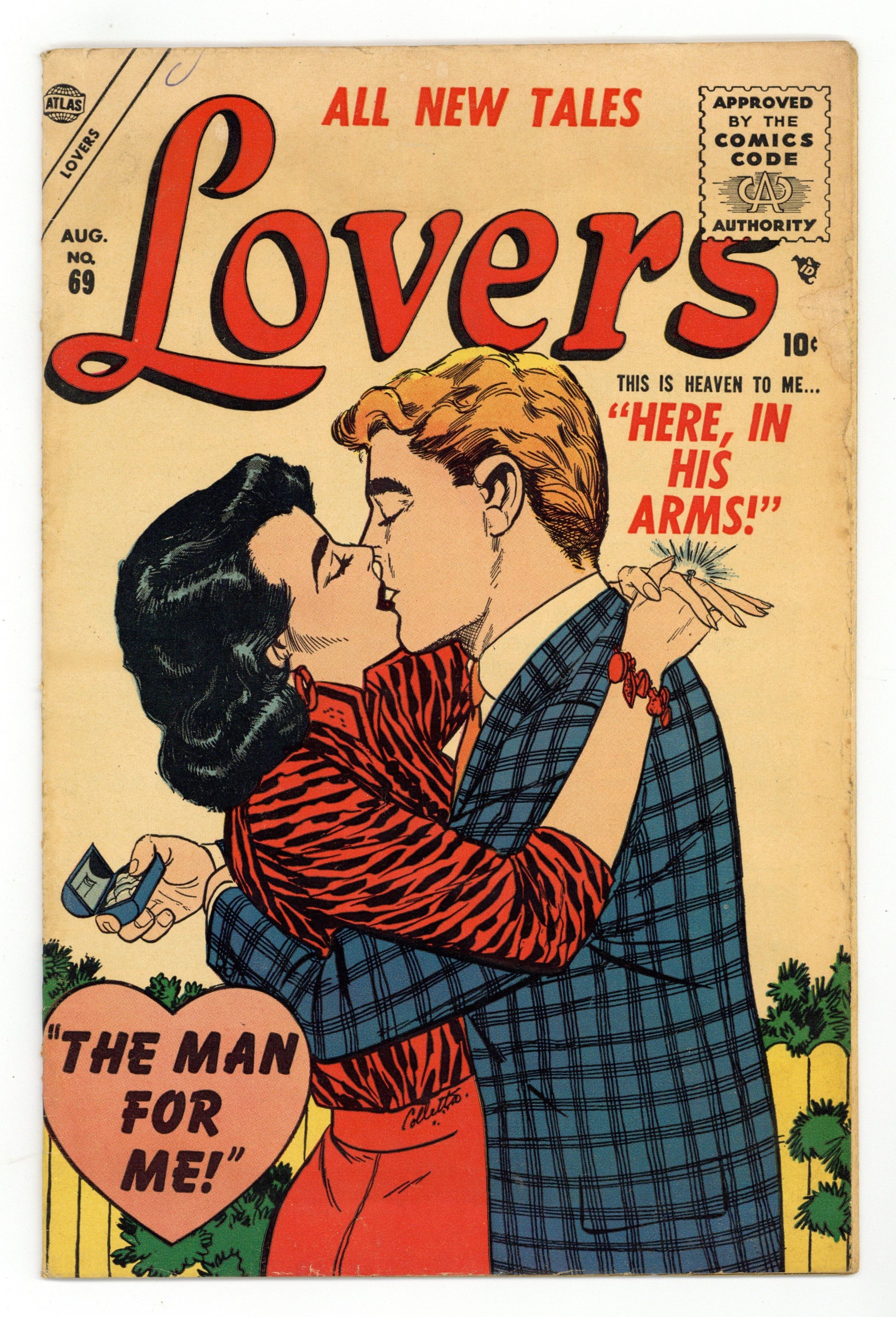 Cover by Vince Colletta. Stories by unknown. Art by Jay Scott Pike, Fred Kida, Doug Wildey and Vince Colletta. "The Man for Me!" with art by Jay Scott Pike - As a receptionist at a local health club, Linda sees many athletes and actors and even dates many of them. But she finds herself attracted to the least handsome fellow at the club. The other girls tell her that she is just trying to prove that looks aren't important, but is really seeing him more out of sympathy than love. "The Moon and You" with art by Fred Kida - Martha and her cousin Doris had been brought up together after Doris' parents died when she was three. Doris was back from New York where she worked as a model in cosmetic ads. She gives Martha advice on falling for a rich man like the author she just met instead of the illustrator she had been seeing previously. Martha thinks she's found real love with the author until she goes for a walk and sees him kissing Doris. "Here in His Arms" with art by Doug Wildey - Jerry and Pam met in their junior year at Claymore and fell in love. But Pam's father breaks the news that his business reverses have been severe and he won't be able to meet her expenses for her last year. Pam decides to apply for a scholarship and has three weeks to prepare for the exams. She isn't worried about the snobs, but had doubts about Jerry's reaction to the news. "...But Will He Propose?" with art by Vince Colletta - Mary was a waitress in a college town. She never had a dateless evening, but never felt love for any of the guys she went out with. Her roommate warns her that the boys there aren't serious about a working girl and will only marry college girls. When Mary meets Ned, she thinks he is different, but he seems reluctant to have her meet his parents. Plus: 2-page text story "Ranch Romance"! 32 pages, full color. Cover price $0.10.