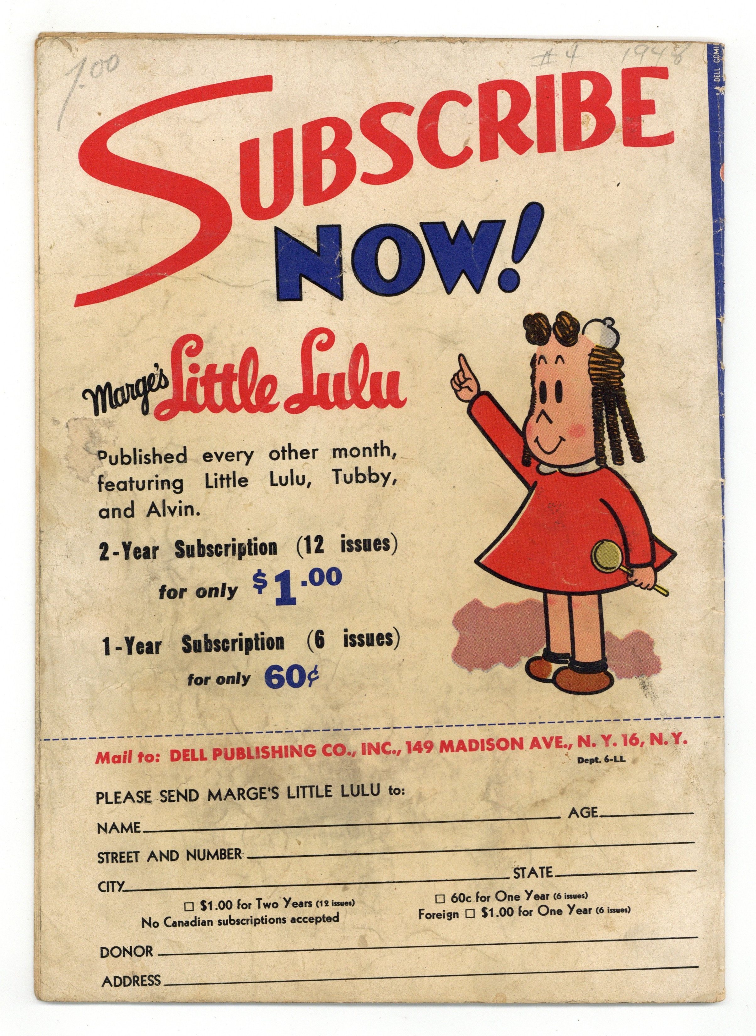 Published Jul 1948 by Dell/Gold Key.$30.50- Water spotting. Residue.