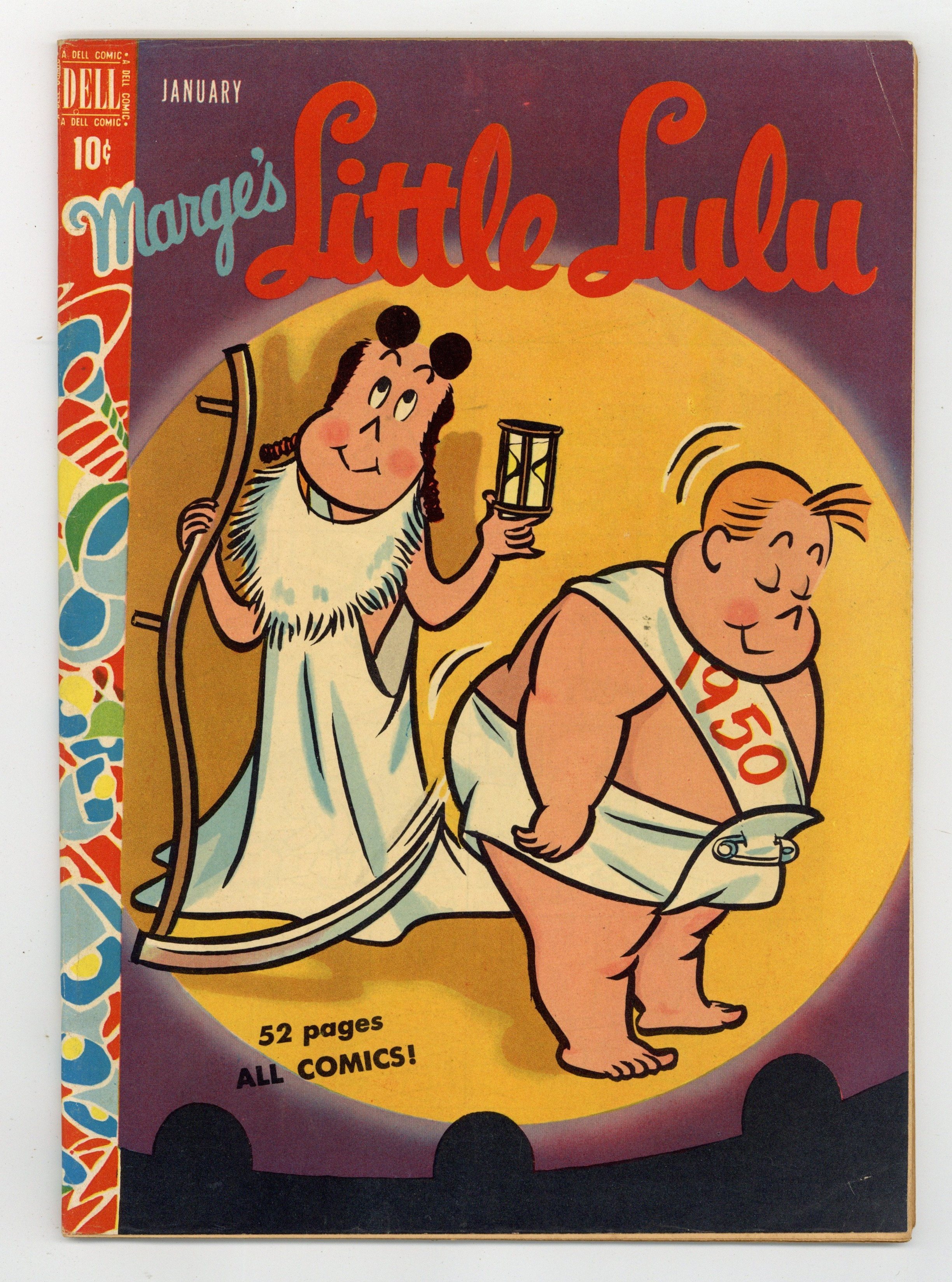 Cover art by Irving Tripp. The Hairbrush Mystery; Tubby solves the case of how dog hairs got on Lulu's mother's hairbrush. Discovers America; Lulu tells Alvin about how she discovered a new world. Untitled story; Lulu takes her dog Mops to the vet because he was sneezing all the time. Toothache; Tubby has a toothache but doesn't want to go to the dentist. Untitled story; Wilbur swindles Lulu out of money and then gives her a pearl necklace. All scripts by John Stanley, art by Irving Tripp. 52 pages, full color. Cover price $0.10.
