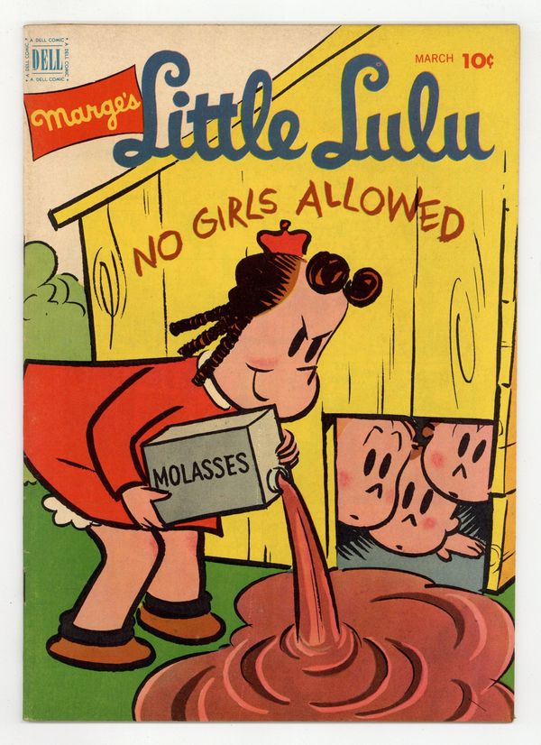 Published Mar 1952 by Dell/Gold Key.$20.00Cover art by Irving Tripp. The Case of the Exploding Cigar; Lulu wants Tubby to find out who gave her pop a cigar that exploded in his face. The Contest; Lulu and Tubby eat everything out of each other's refrigerators. The Magic Wand; Wilbur pretends to have a magic wand that makes Lulu disappear. That Awful Witch, Hazel, Again; Lulu tells Alvin about when Hazel turned her into a water pipe. Cousin Jefferson; Tubby's cousin Jefferson steals Tub's clothes at the lake. All scripts by John Stanley, art by Irving Tripp. Two-page text story, Lulus Diry ("Diary"). 36 pages, full color. Cover price $0.10.
