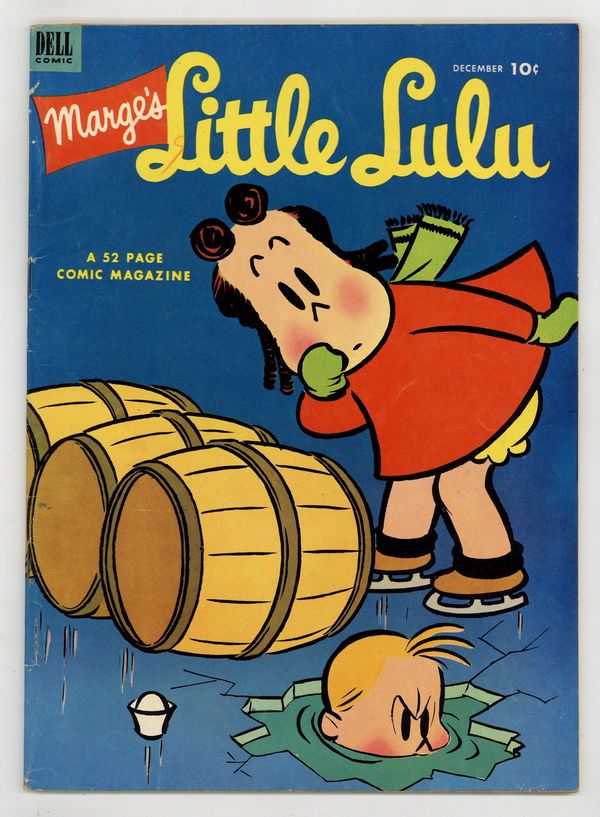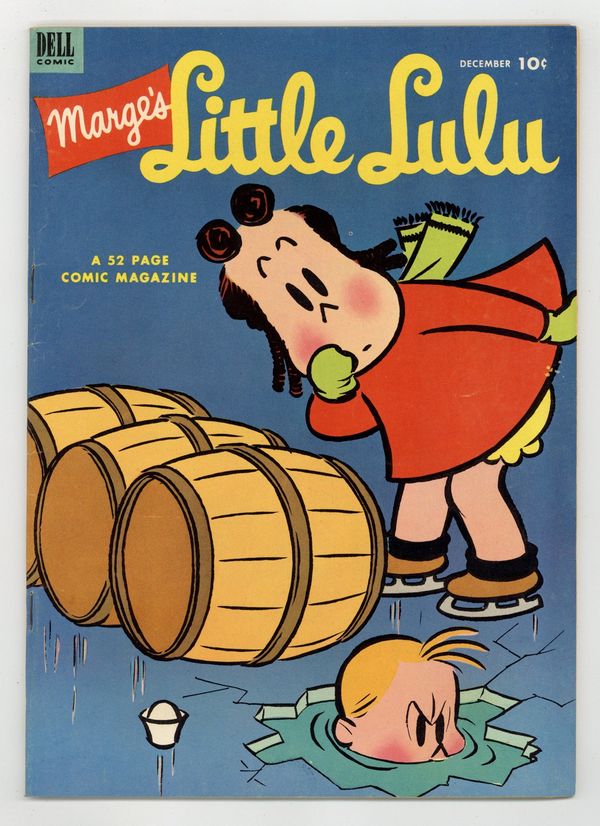 Published Dec 1952 by Dell/Gold Key.$16.00Snowjinks; Tubby fakes an injury so that he doesn't have to shovel Lulu's sidewalk. Tubby's Doll; Tubby cannot seem to get rid of the doll his aunt gave him for Christmas. Feathered Friends; Lulu is sick in bed, so the pigeons she feed in the park come to her room. The Leftover Christmas Tree; Lulu claims that a leftover Christmas tree will get her 50 cents. That Ol' Witch Hazel and Her Son Calvin; Lulu tells Alvin about Hazel's son Calvin who is a giant. Camping In; Tubby, Willy, and Eddie camp out overnight in Tubby's living room. Inside back cover has advertisement for Buck Rogers Space Ranger Kit. Two-page text story, Lulus Diry ("Diary"). 52 pages, full color. Cover price $0.10.