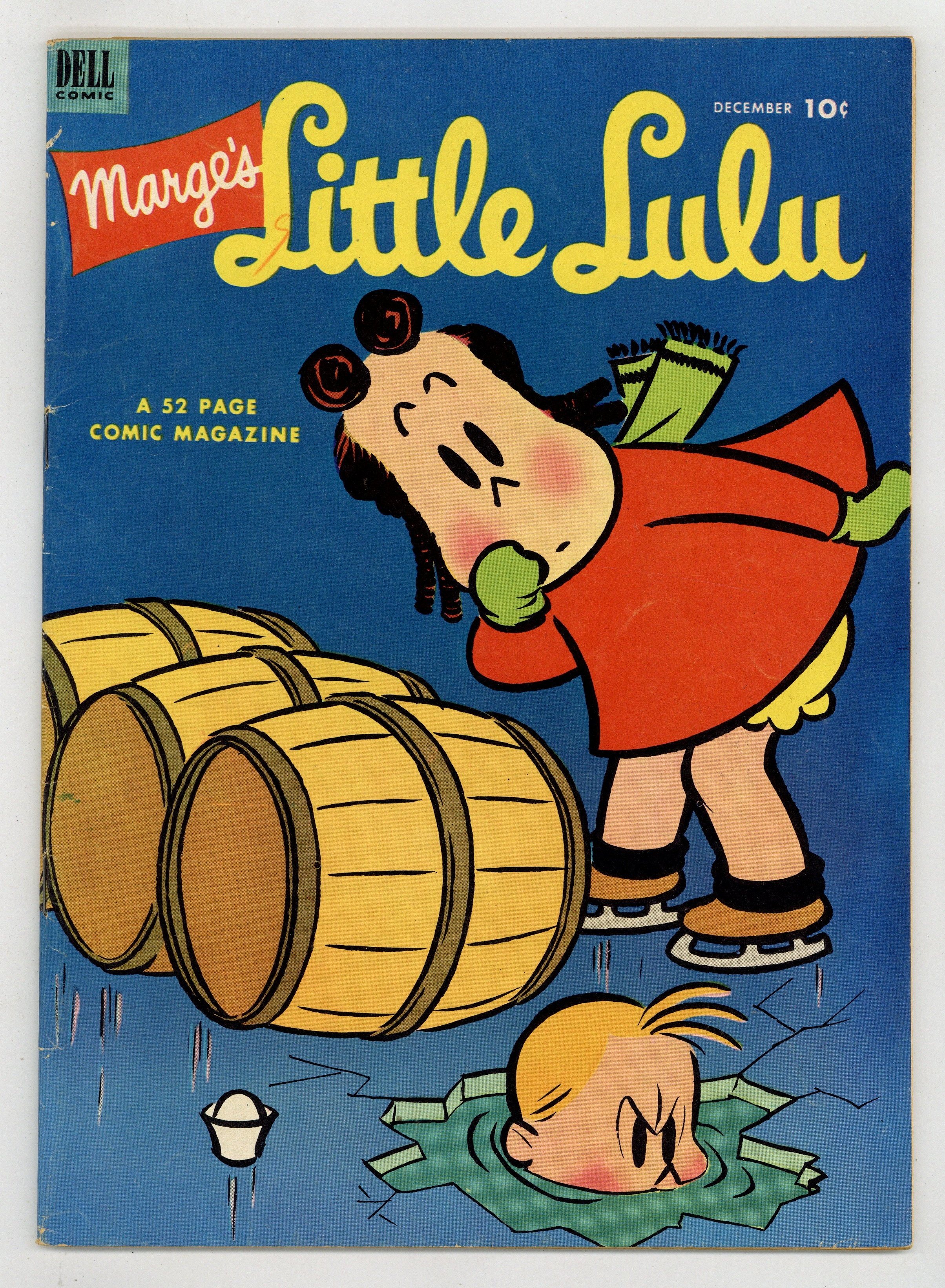 Published Dec 1952 by Dell/Gold Key.$20.00Snowjinks; Tubby fakes an injury so that he doesn't have to shovel Lulu's sidewalk. Tubby's Doll; Tubby cannot seem to get rid of the doll his aunt gave him for Christmas. Feathered Friends; Lulu is sick in bed, so the pigeons she feed in the park come to her room. The Leftover Christmas Tree; Lulu claims that a leftover Christmas tree will get her 50 cents. That Ol' Witch Hazel and Her Son Calvin; Lulu tells Alvin about Hazel's son Calvin who is a giant. Camping In; Tubby, Willy, and Eddie camp out overnight in Tubby's living room. Inside back cover has advertisement for Buck Rogers Space Ranger Kit. Two-page text story, Lulus Diry ("Diary"). 52 pages, full color. Cover price $0.10.